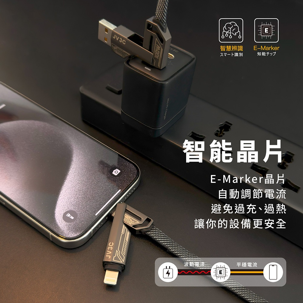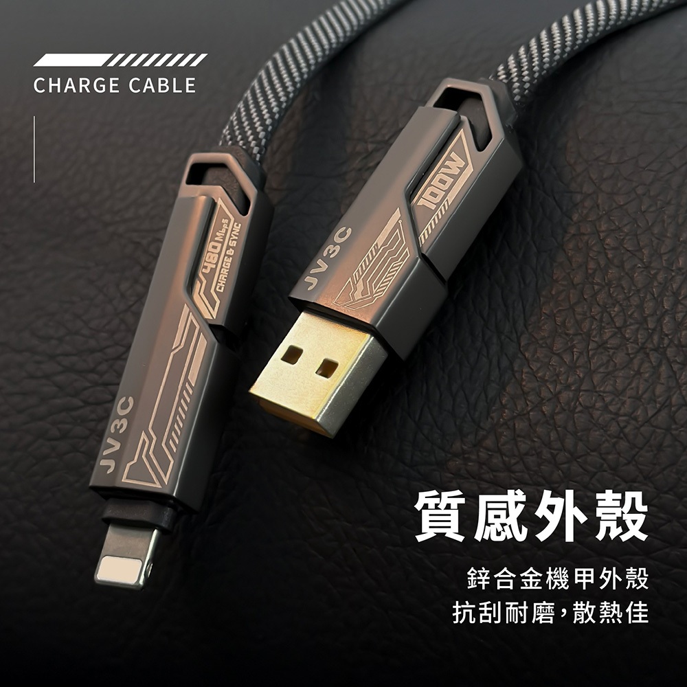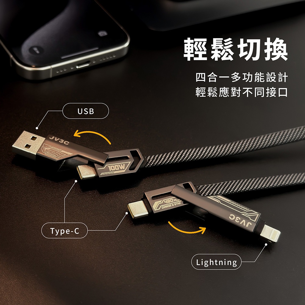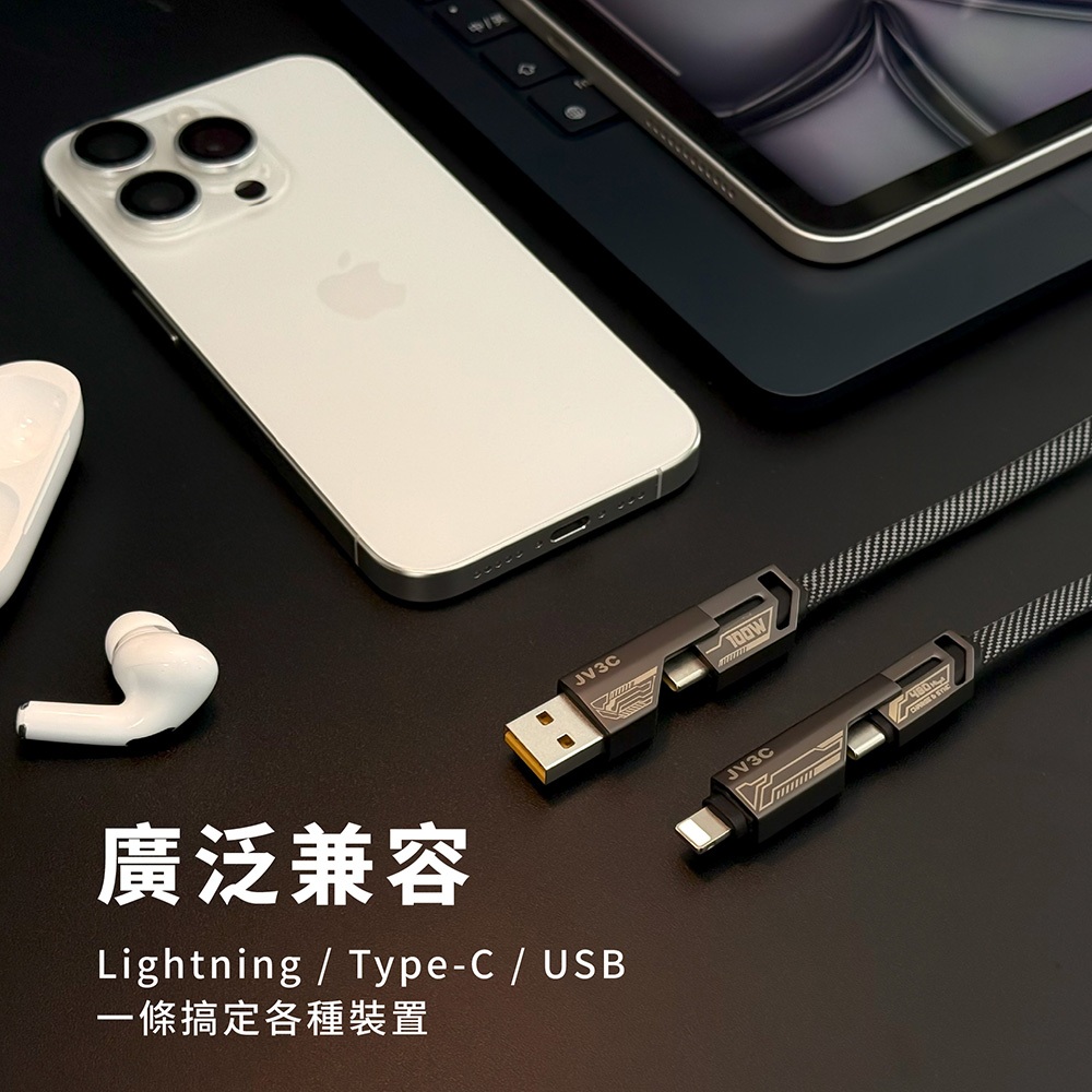 JV3C 100W 四合一機甲充電傳輸線 傳輸線 充電線 快充線 快充 支援快充 PD快充 4合1 iPhone 安卓100公分|200公分Cables, Chargers & ConvertersJV3C商城