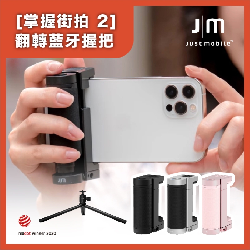 • Just Mobile [掌握街拍 2+腳架] 超值組 手機藍牙握把 自拍快門支架 拍照神器 自拍棒