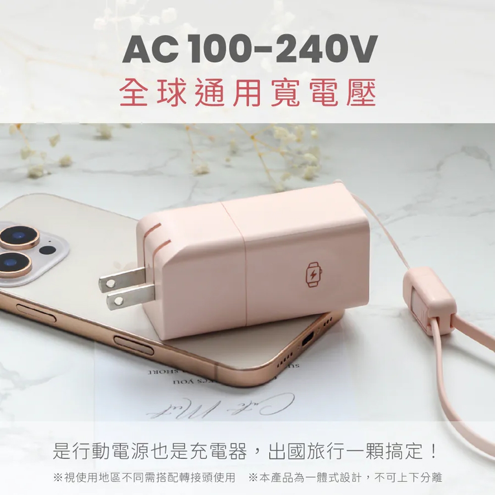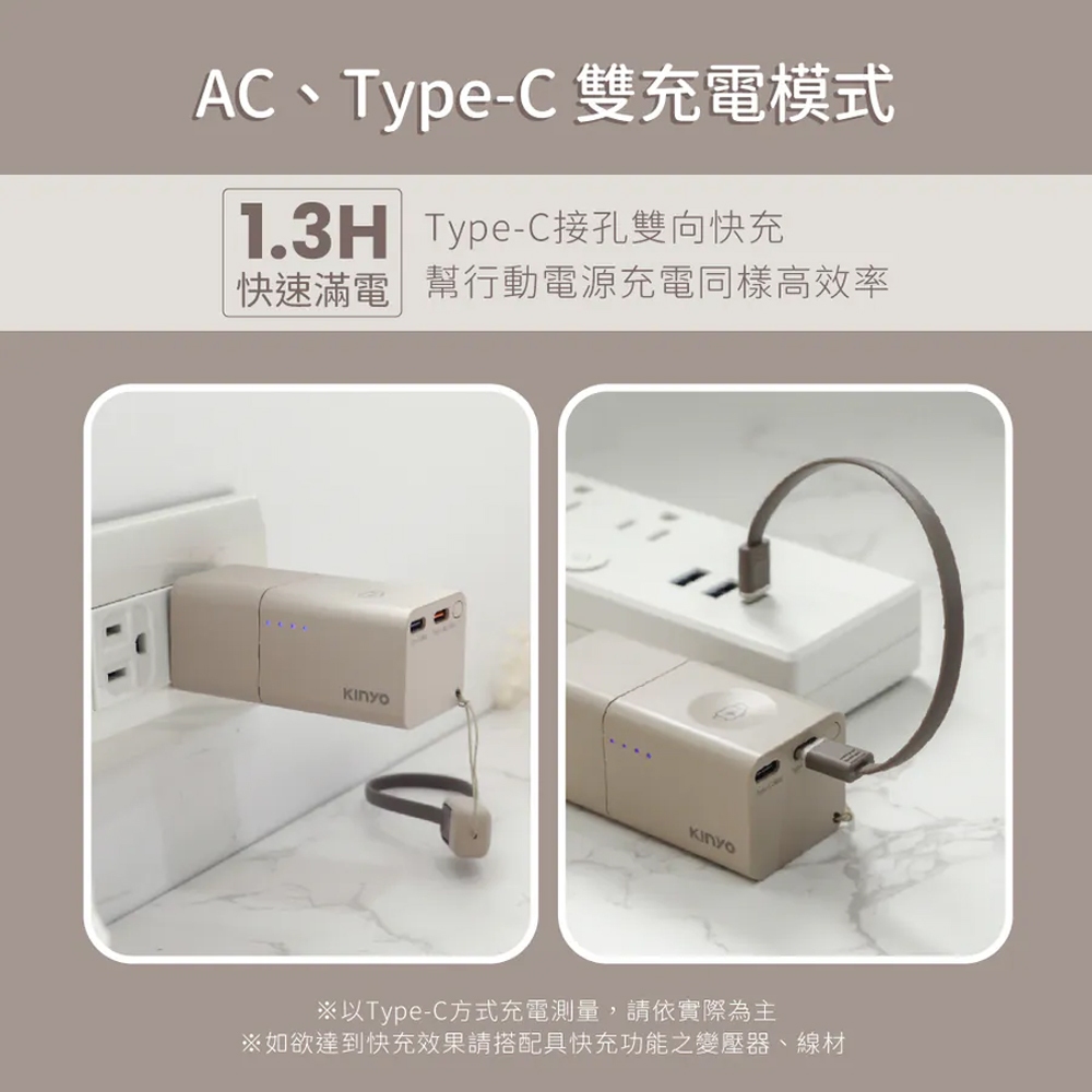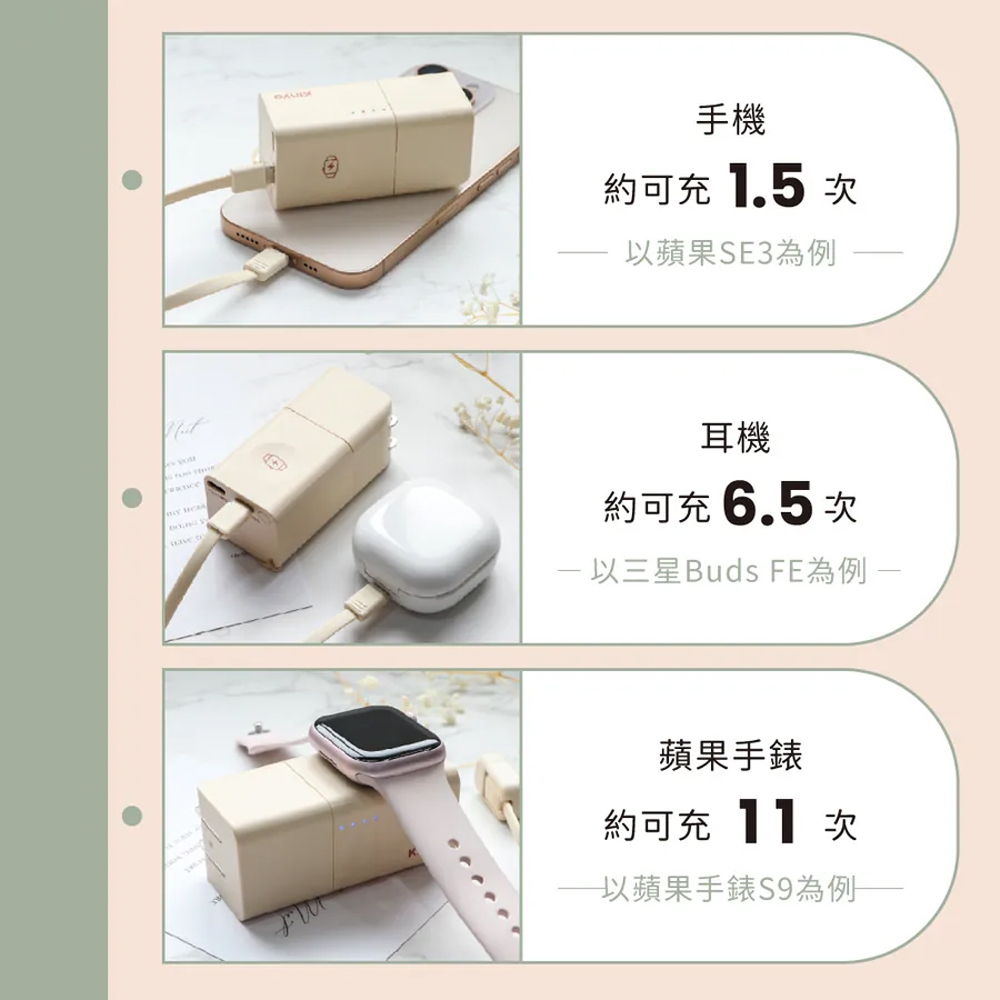 KINYO 5 in 1自帶AC迷你萬能行動電源 5000mAh 行動電源 插座 自帶線 掛繩線 快充 移動電源棕色|粉色|米色Powerbanks & BatteriesJV3C商城