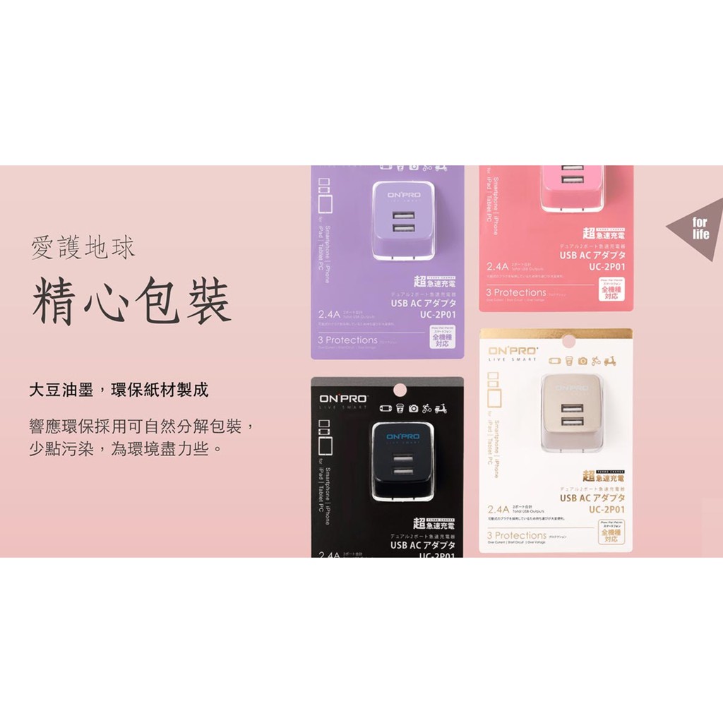 • 【ONPRO】 UC-2P01 2.4A 雙孔 USB充電器 急速充電 快速充電 國際電壓_Kimi極美職人推薦