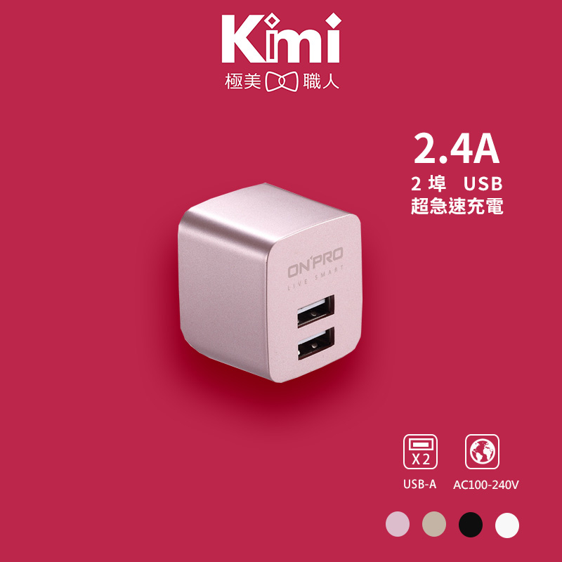 【ONPRO】 UC-2P01 2.4A 雙孔 USB充電器 急速充電 快速充電 國際電壓_Kimi極美職人推薦【冰晶白】|【深夜黑】|【玫瑰金】|【典雅金】Cables, Chargers & ConvertersKimi極美職人