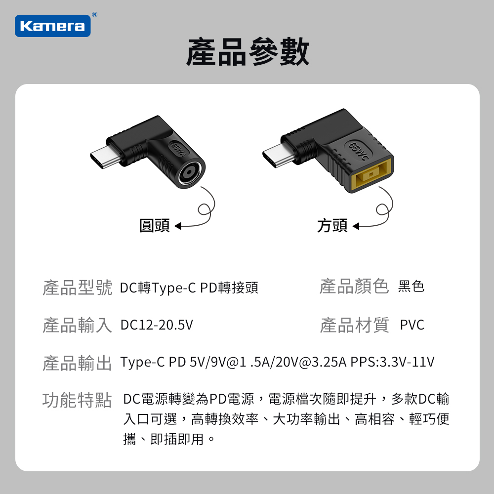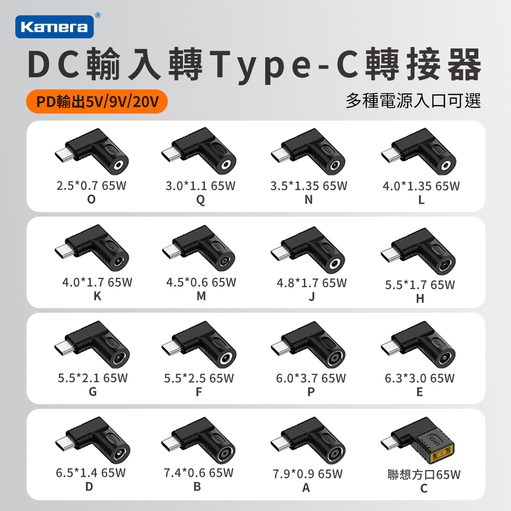 DC輸入轉Type-C PD 65W 轉接頭DC 7.4*5.0-65W|DC 6.3*3.0-65W|DC 7.9*0.9-聯想圓口-中間針|DC 2.5*0.7-65W|DC 6.0*3.7-65W|DC 5.5*1.7-65W|DC 3.0*1.1-65W|DC 4.0*1.35-65W|DC 7.4*0.6-65W|DC 4.5*0.6-65W|DC 4.8*1.7-65W|DC 5.5*2.1-65W|DC 5.5*2.5-65W|DC 6.5*1.4-65W|DC 聯想方口-中間針-65W|DC 3.5*1.35-65W|DC 4.0*1.7-65WCables, Chargers & ConvertersKamera 佳美能旗艦館