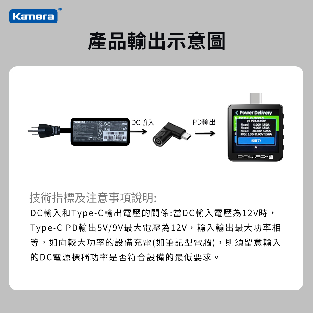 • DC輸入轉Type-C PD 65W 轉接頭