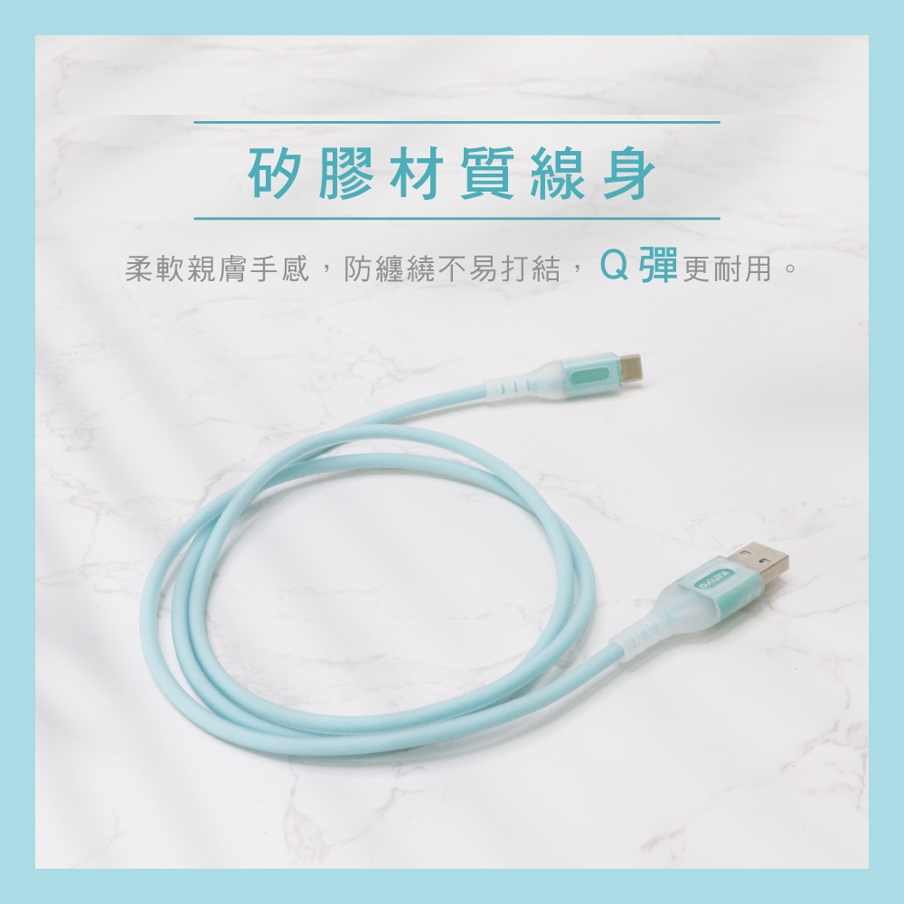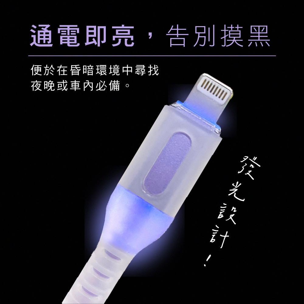 • 【KINYO官方直營】矽膠發亮充電傳輸線1M (USB) lightning Apple蘋果 Type-C適用