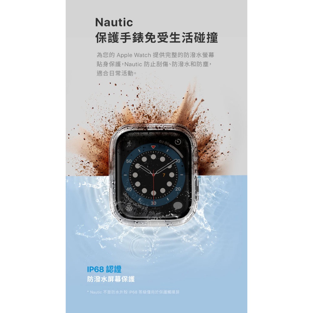 • UNIQ Nautic IP68 防潑水 曲面玻璃錶殼 適用 Apple Watch 10 9 8 保護殼 46 45