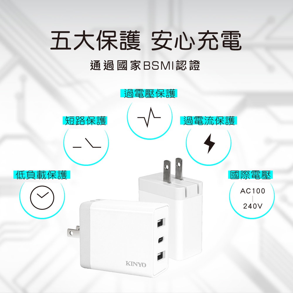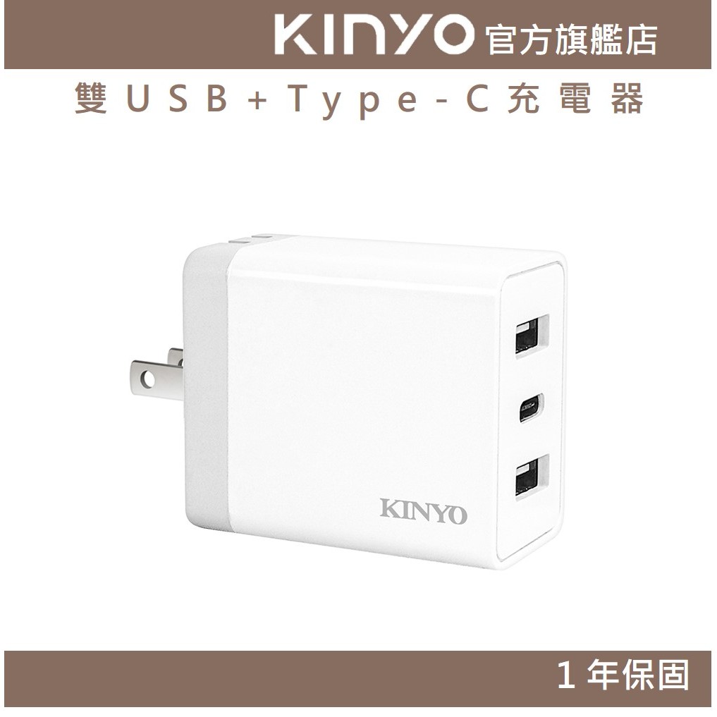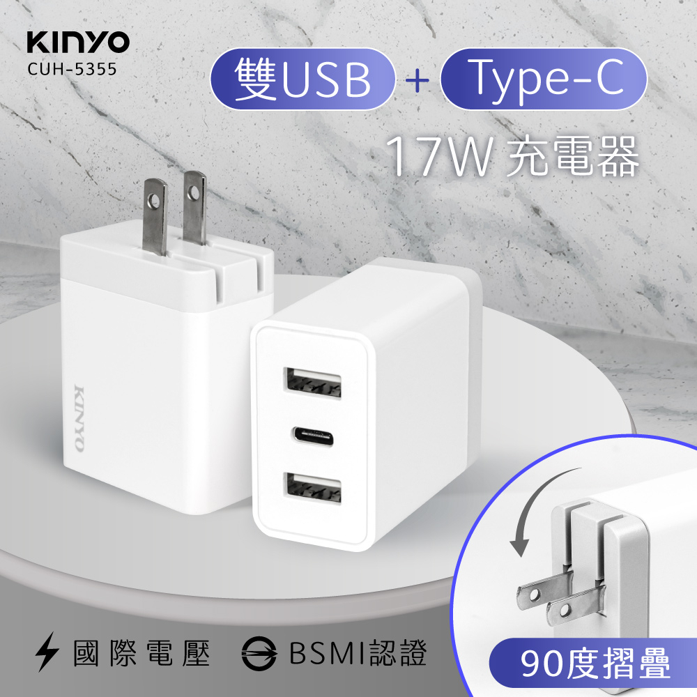 〖KINYO〗 雙USB+Type-C充電器 (CUH) 100-240V 國際電壓 3.4A快充|豆腐頭 充電頭 出國CUH5355 充電器Cables, Chargers & ConvertersKINYO官方旗艦店_家電館