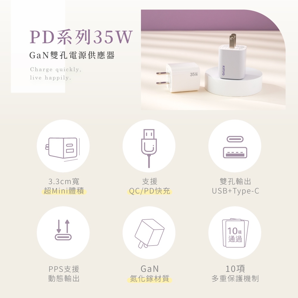 〖KINYO〗 氮化鎵雙孔充電器35W (PDCB)國際電壓 35W GaN快充 充電 充電頭 PD3.0PDCB135W 白色|PDCB135Y 黃色|PDCB135PU 紫色Cables, Chargers & ConvertersKINYO官方旗艦店_家電館