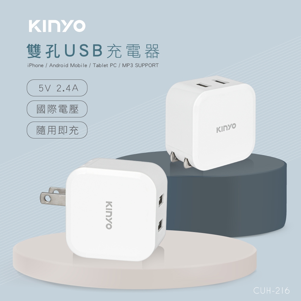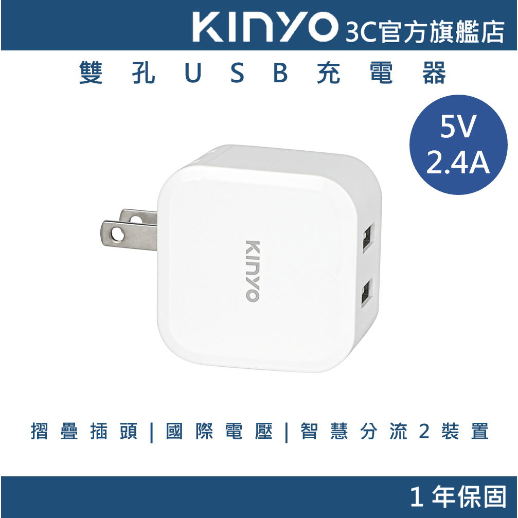 【KINYO官方直營】12W 雙孔USB折疊式充電器 110~240V國際電壓(CUH)CUH216 雙孔USB充電器Cables, Chargers & ConvertersKINYO官方旗艦店_3C館