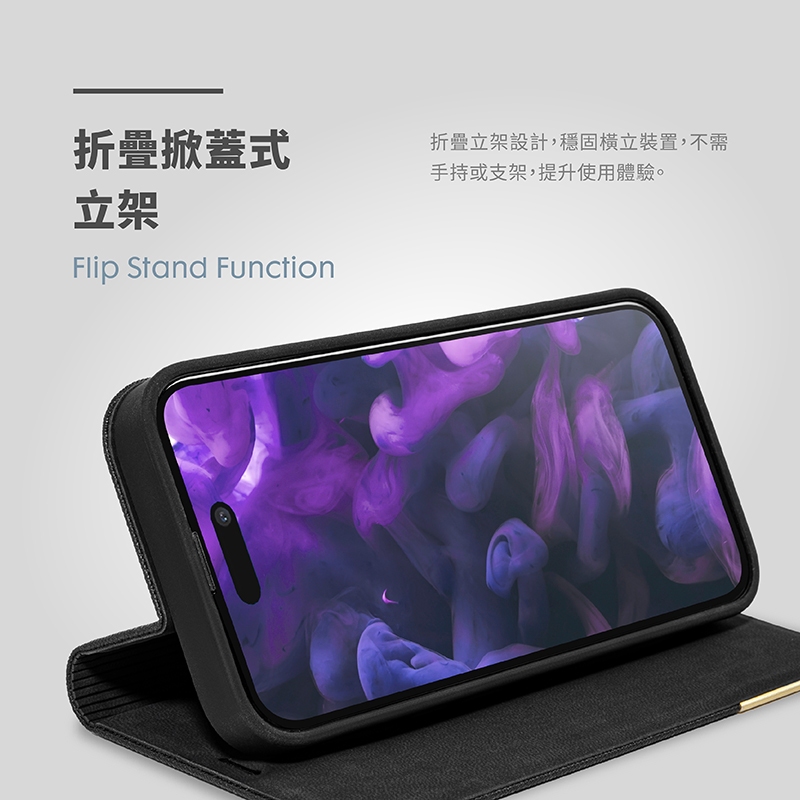 【LAUT 萊德】iPhone 15/Plus/Pro/Pro Max 翻蓋立架保護殼-皮革黑 (手機殼)
