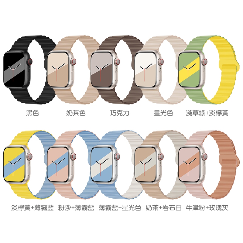 雙色矽膠磁吸錶帶 適用 Apple Watch 錶帶 10 9 8 7 SE 6 5 46 40 42 44 41 45
