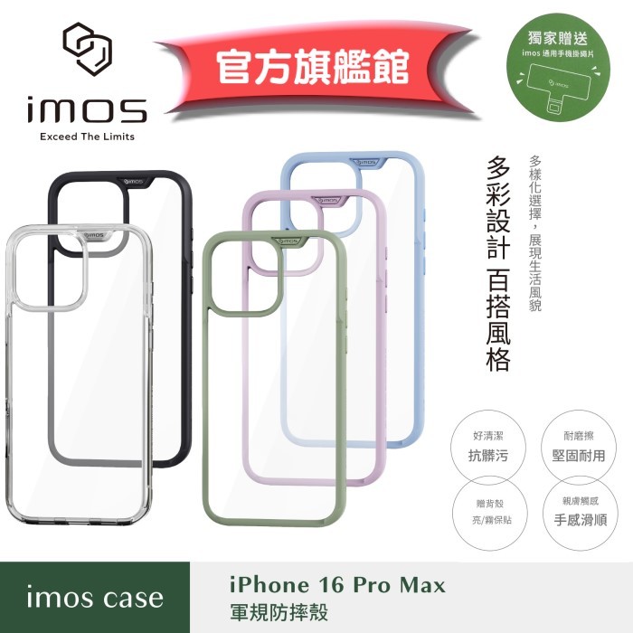 imos 【官方旗艦館】 iPhone 16 Pro Max 6.9 吋 軍規殼防摔殼 保護殼贈手機掛繩片跟手機殼背膜貼黑色 邊框黑色 背面透明|麻綠色 邊框亞麻綠色 背面透明|藍莓色 邊框藍莓色 背面透明|丁香紫色 邊框丁香紫色 背面透|全透明Cases, Covers, & Skinsimos 官方旗艦館