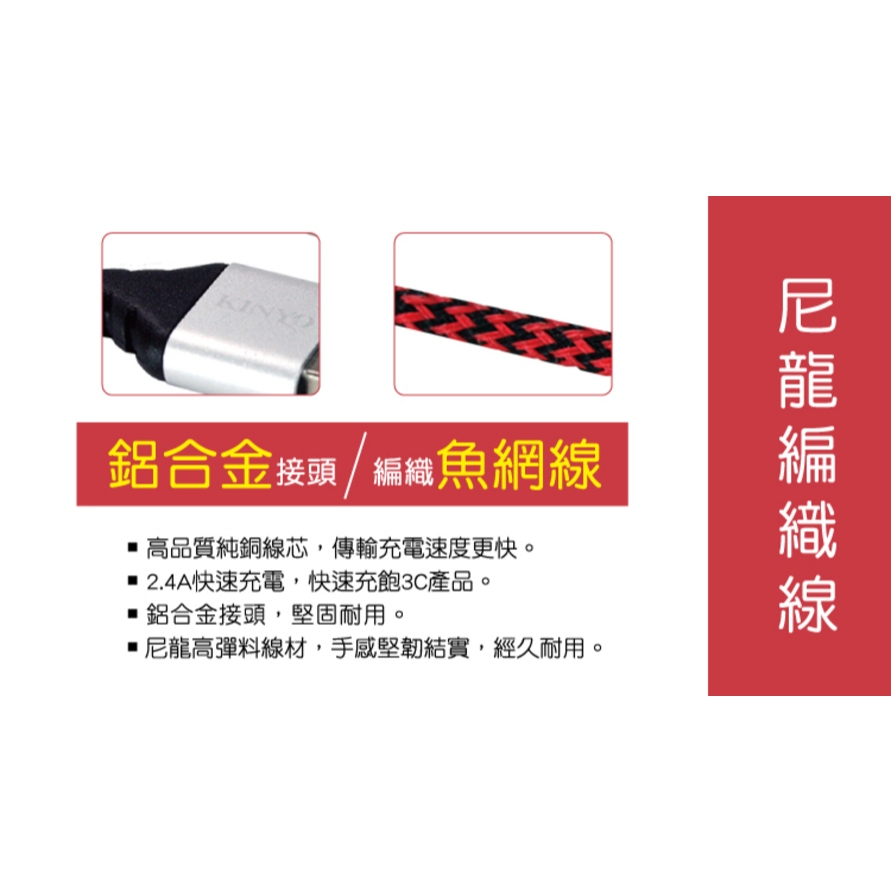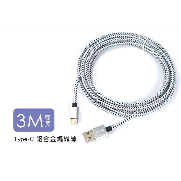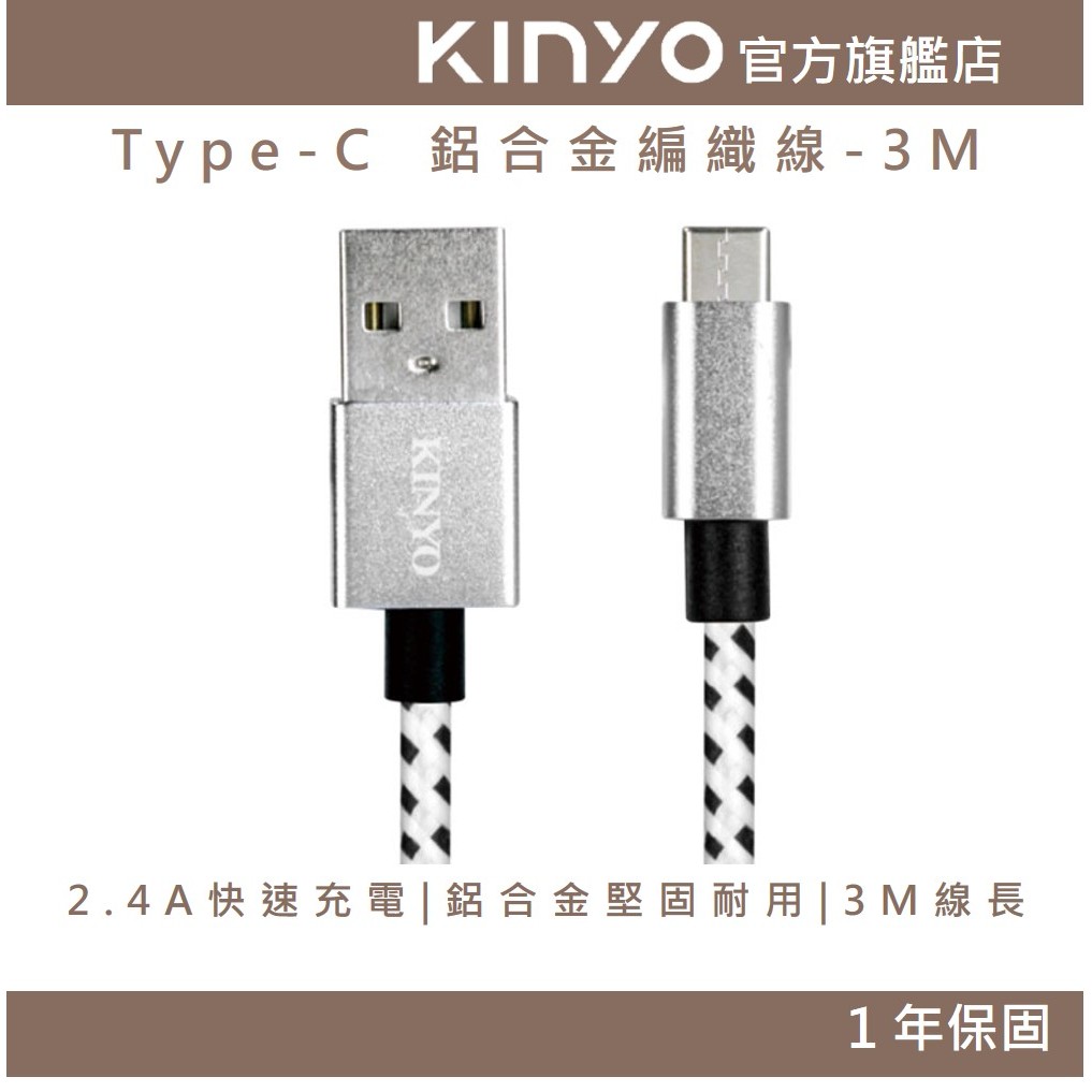 〖KINYO〗 Type-C 鋁合金編織線-3M (USBC) 傳輸 2.4A 手機充電線USBC12充電線Cables, Chargers & ConvertersKINYO官方旗艦店_家電館