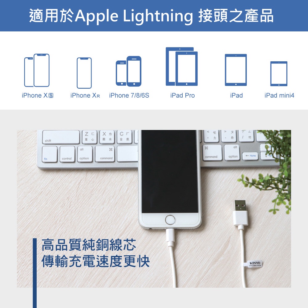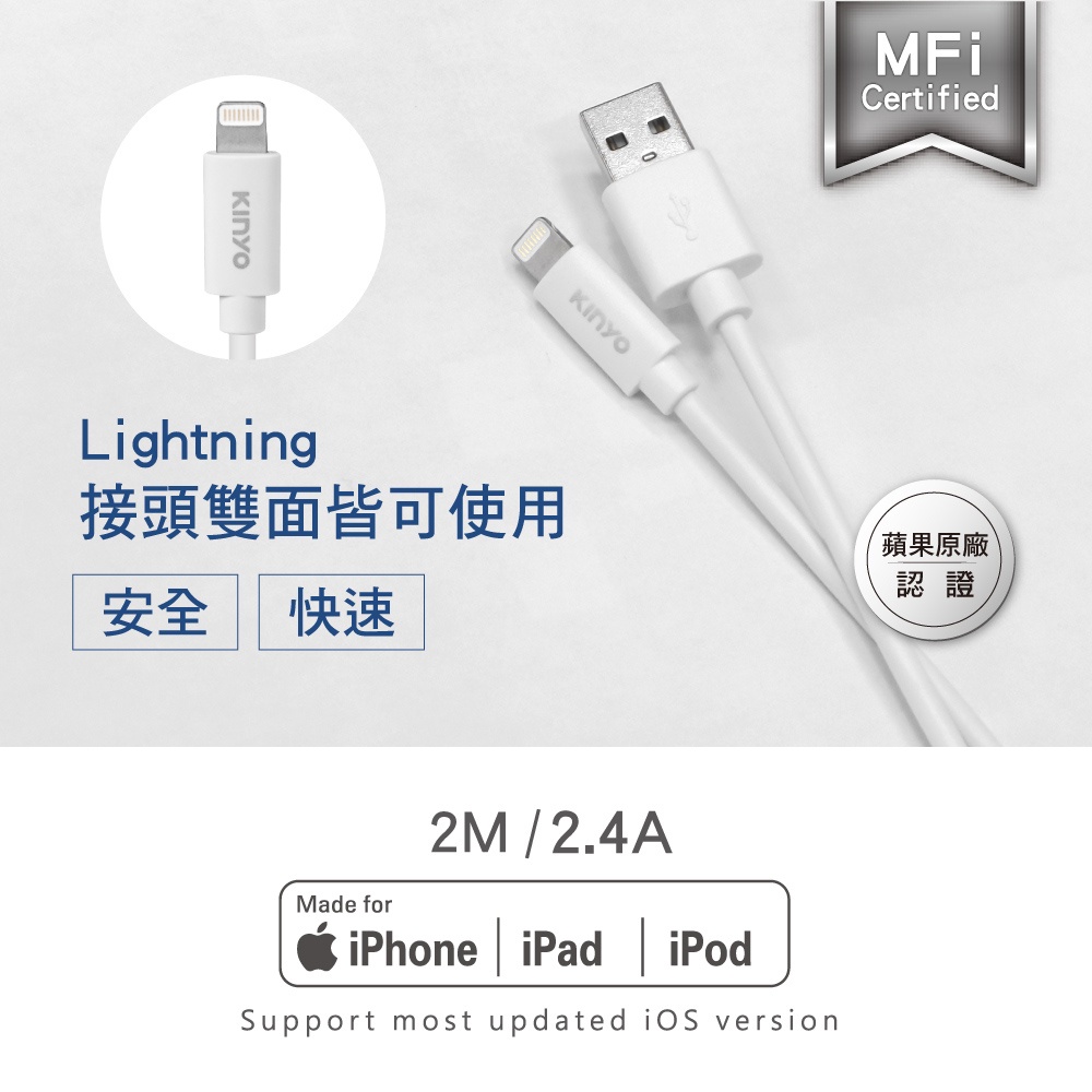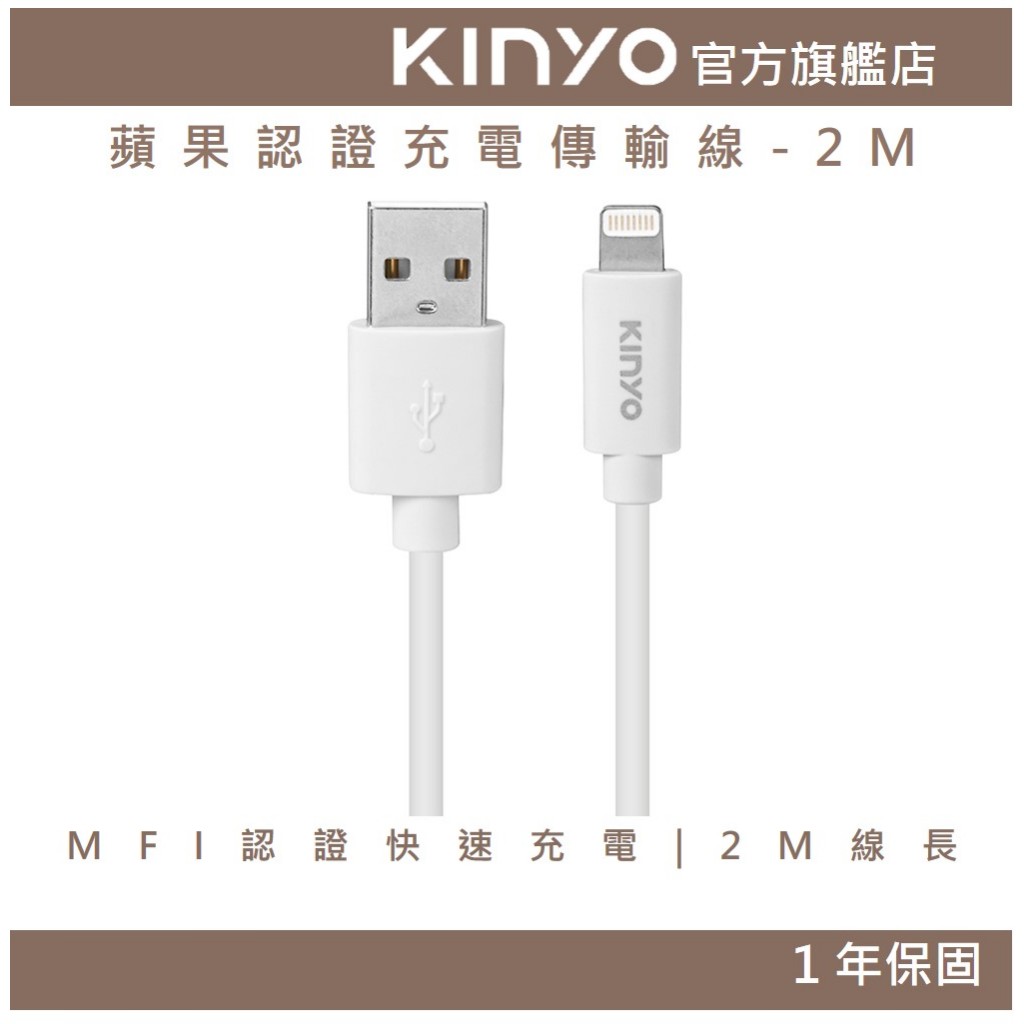 〖KINYO〗 蘋果認證充電傳輸線-2M (USBAP) MFI認證 純銅線芯 傳輸USBAP113W 充電線Cables, Chargers & ConvertersKINYO官方旗艦店_家電館