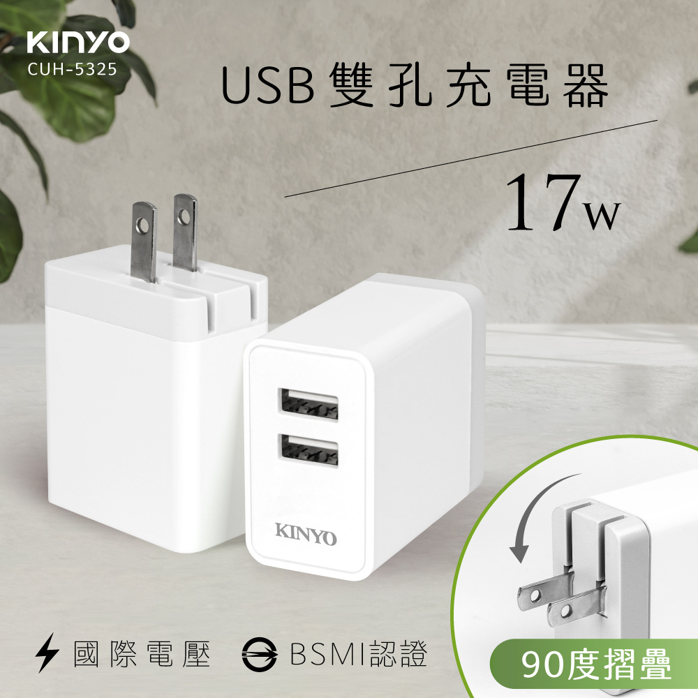 〖KINYO〗 雙輸出USB充電器 (CUH)100-240V 國際電壓 3.4A快充|豆腐頭 充電頭 出國CUH5325 USB雙孔充電器Cables, Chargers & ConvertersKINYO官方旗艦店_家電館