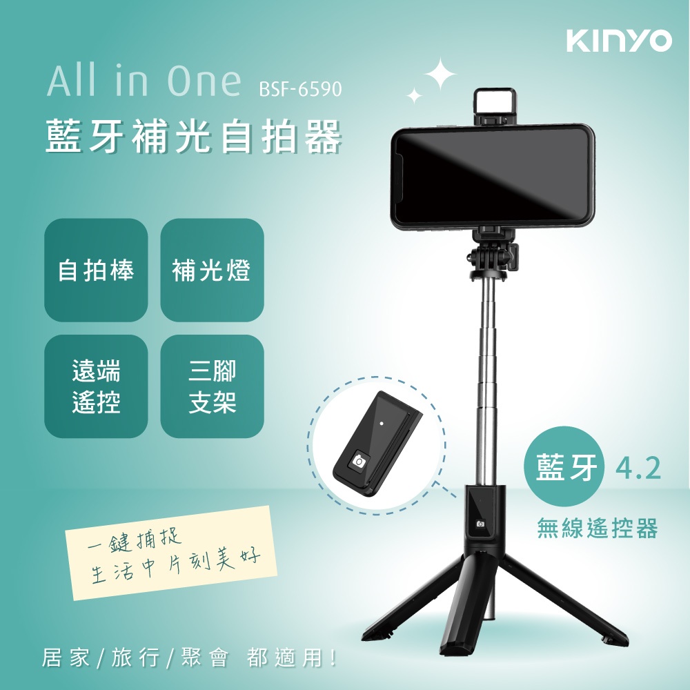 【KINYO官方直營】藍牙補光自拍器 (BSF) 手機三腳架 直播手機架BSF6590 藍牙補光自拍器Selfie AccessoriesKINYO官方旗艦店_3C館
