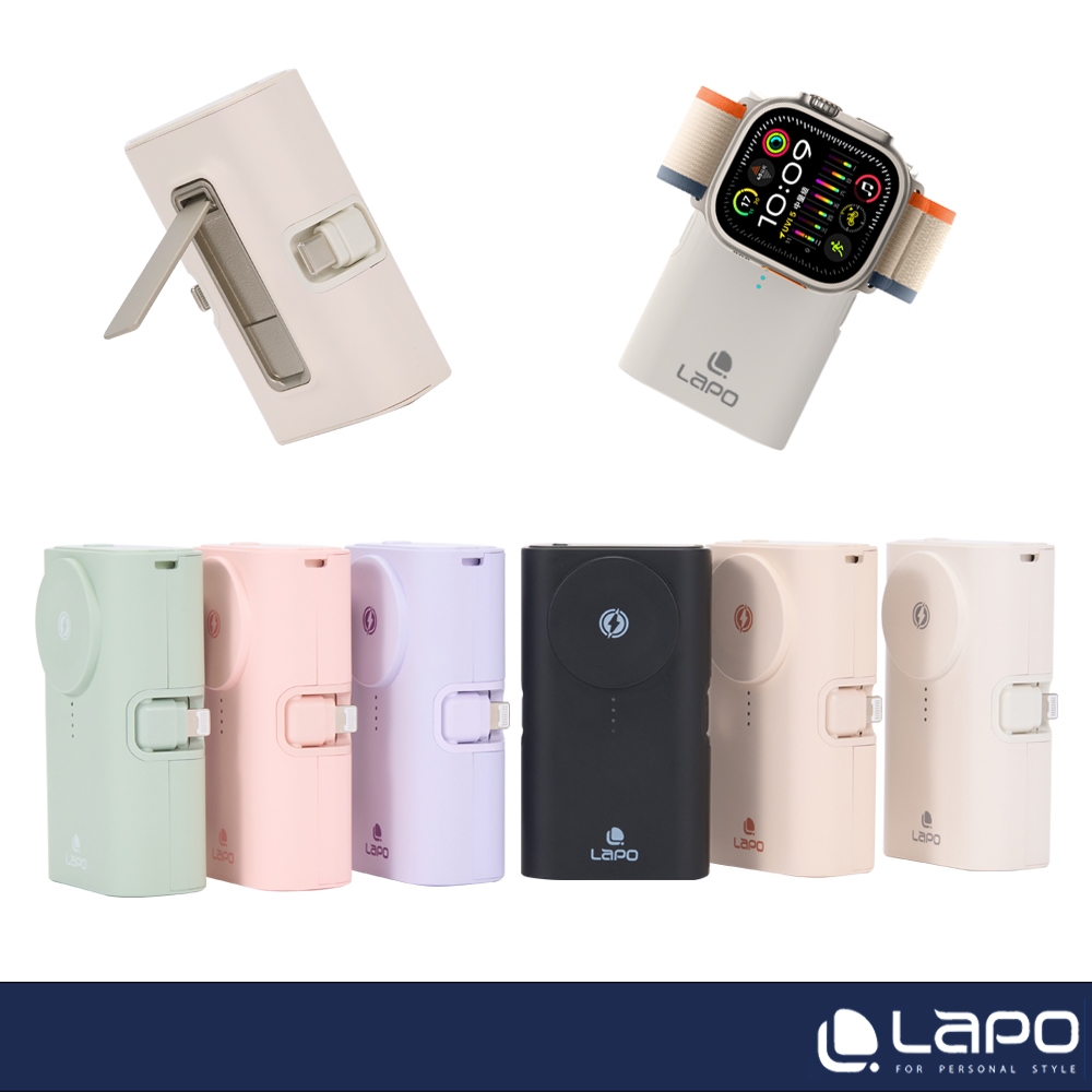 【LaPO】原廠商城 全功能快充版口袋行動電源(WT-12/18Wh)適用applewatch無線充電 20W 日本電芯清綠|幻紫|那堤|蜜粉|暖白|絕黑Powerbanks & BatteriesLaPO 品牌旗艦店