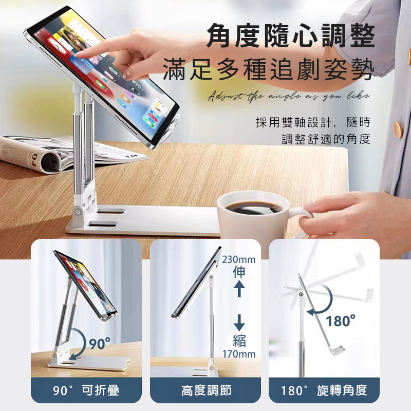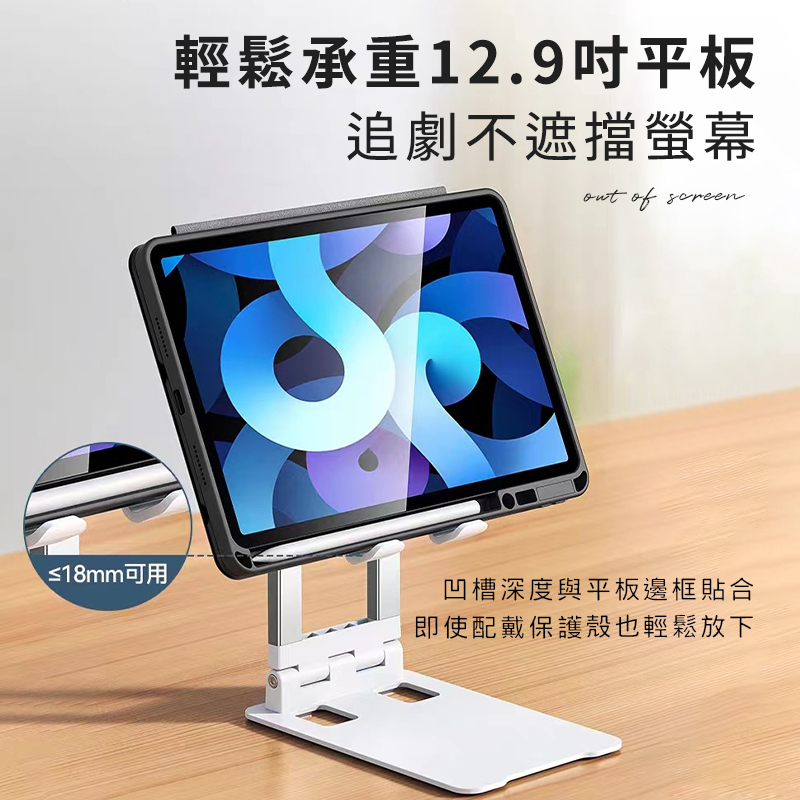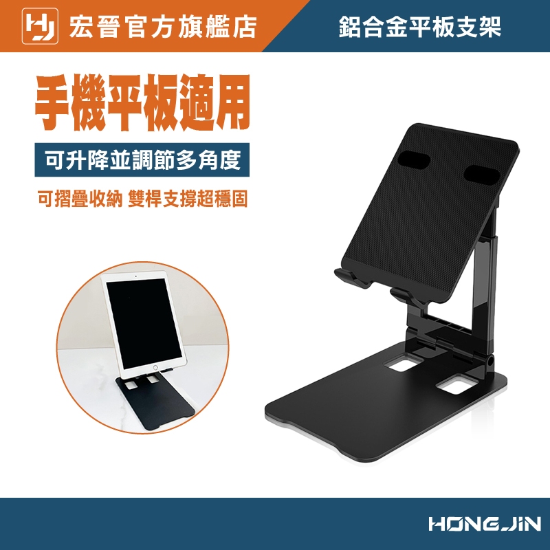 摺疊平板架 超穩定不晃動 鋁合金平板支架 懶人支架 折疊平板架 平板支架 手機支架 金屬手機架 平板黑色|📌Phone GripsHONG JIN 宏晉 |3C資訊廣場