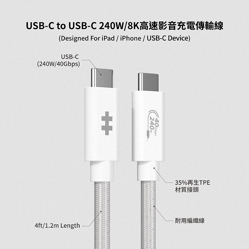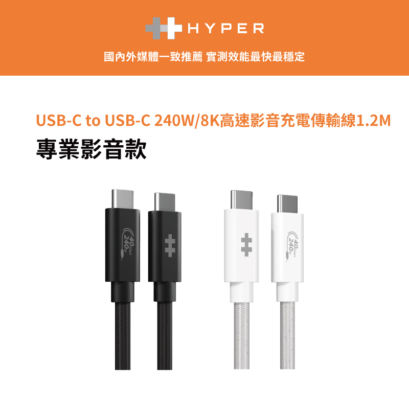 【HyperDrive】USB-C to USB-C 240W/8K 高速影音充電傳輸線1.2m白|黑Cables, Chargers & ConvertersHyperDrive 台灣官方旗艦店