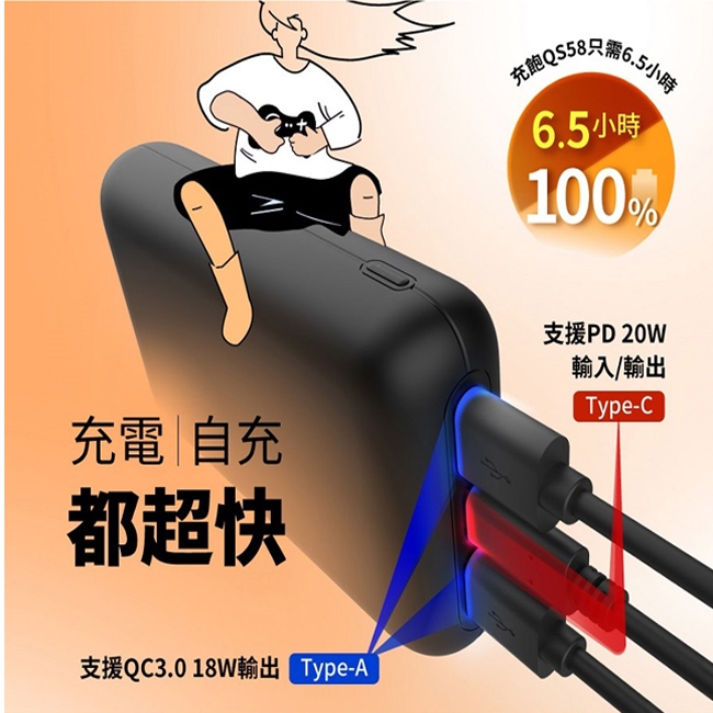 (配原廠TYPE-C線)廣穎QS58【有標示Wh】20000mAh 防火殼具 PD快充T雙向快充行動電源 【HT好家房】白色|黑色Powerbanks & BatteriesHT好家房