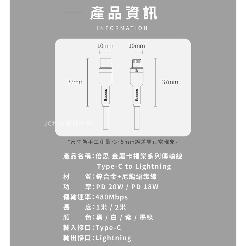【台灣倍思Baseus】金屬卡福樂系列 Type-C to Lightning 快充線 PD20W 傳輸線 充電線墨綠色,2M|紫色,1M|紫色,2M|黑色,1M|黑色,2M|白色,1M|白色,2M|墨綠色,1MCables, Chargers & ConvertersJC科技 官方旗艦店