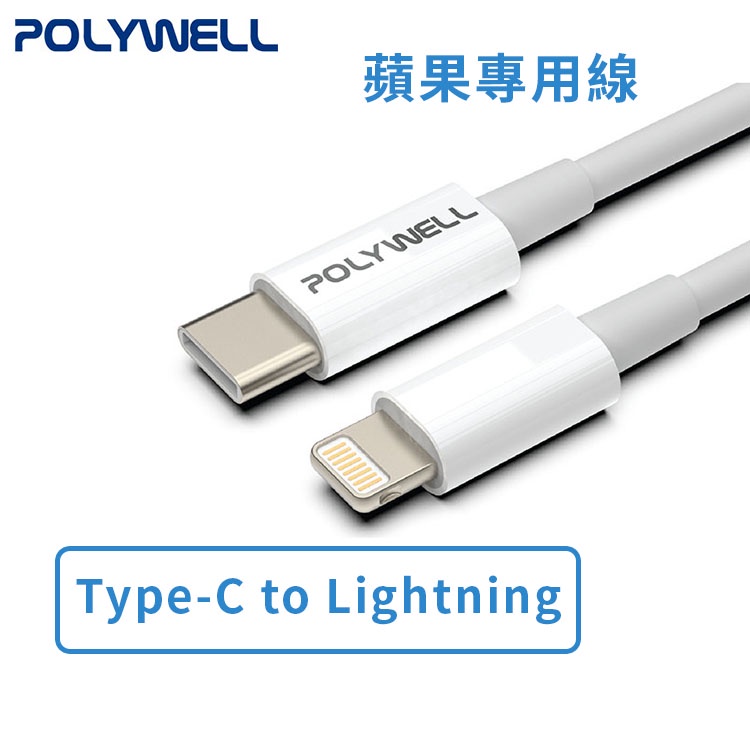 【POLYWELL】Type-C Lightning PD快充線 充電線 傳輸線 20W 2米 適用Apple20公分|50公分|100公分|200公分Cables, Chargers & ConvertersJC科技 官方旗艦店