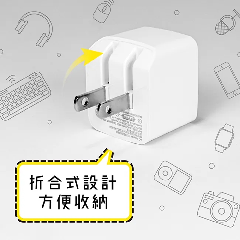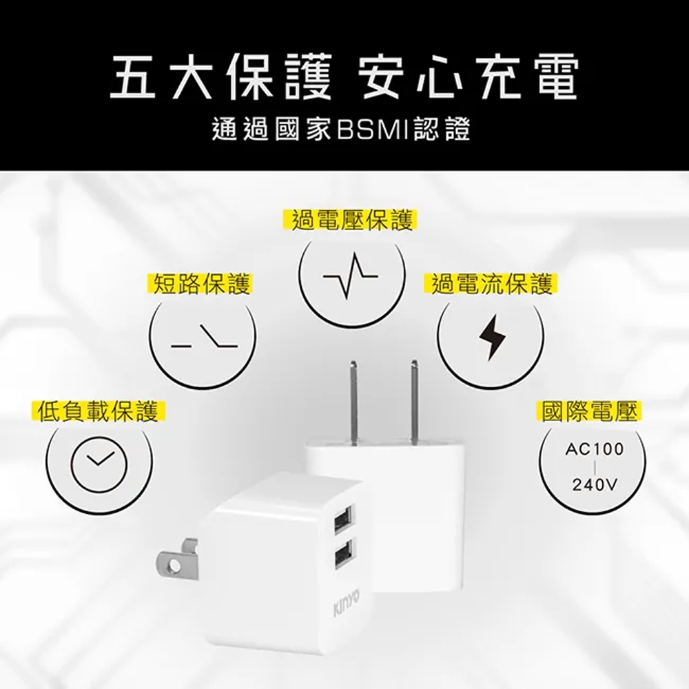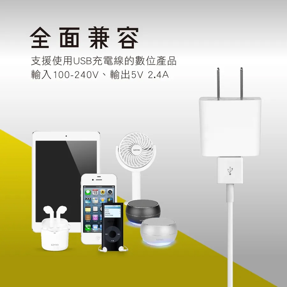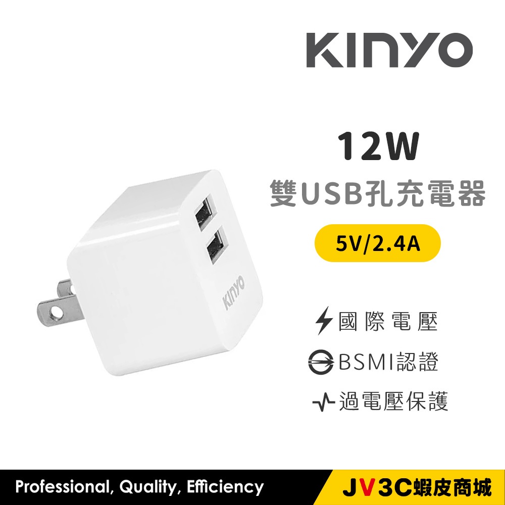 KINYO 12W 豆腐頭 雙孔USB充電器 BSMI認證 快充頭 插頭 5V2.4A 充電頭 旅充白色Cables, Chargers & ConvertersJV3C商城