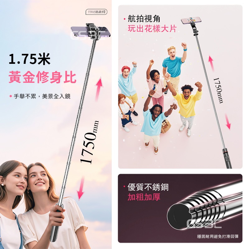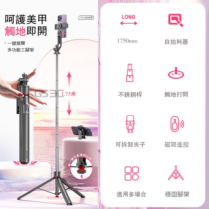 CYKE 一碰即開 跳跳桿 鋁合金 多功能 三腳架 藍牙控制 自拍桿 直播支架 自拍棒 自拍神器 落地 桌面 自動展開TT02-黑色(無燈)|TT02-黑色(單燈)|TT02-黑色(雙燈)Selfie AccessoriesGS 3C 手機平板配件選品店