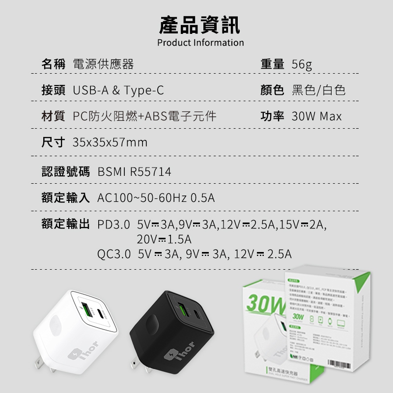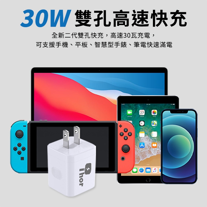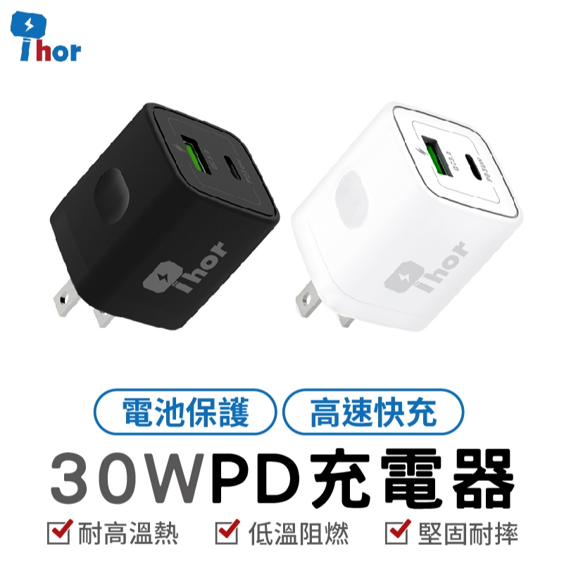 THOR 30W充電器 TypeC 充電頭 快充頭 PD+QC充電頭 充電器 快速充電頭 手機充電器 豆腐頭 PD頭THOR 30W充電器 白色|THOR 30W充電器 黑色Cables, Chargers & ConvertersLarmi 樂米 台灣直營店