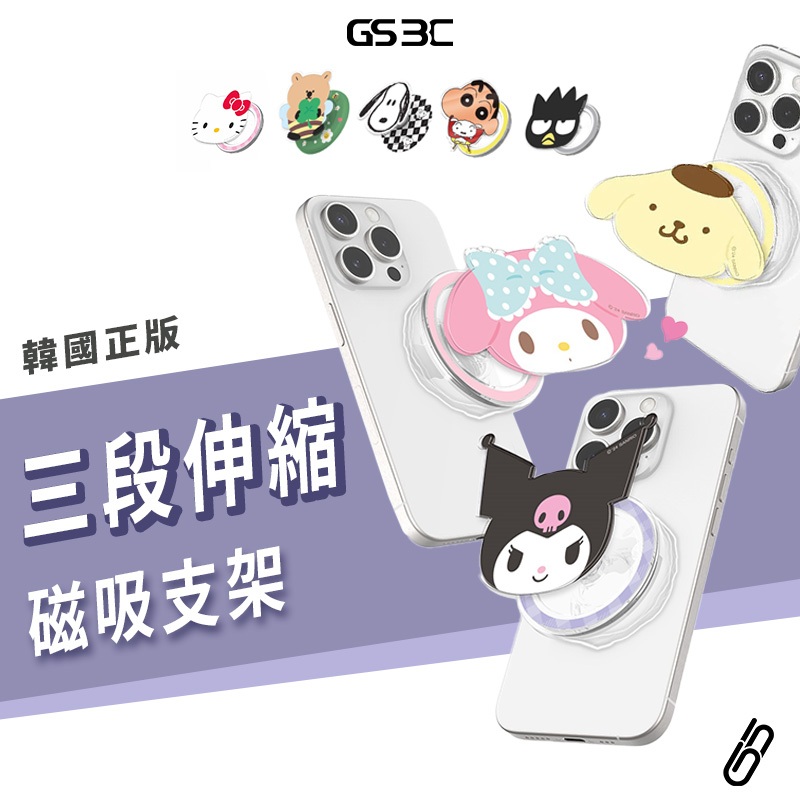 韓國 正版 授權 迪士尼 三麗鷗 Magsafe 磁吸 手機 氣囊 支架 手機架 手機架 酷洛米 Melody 布丁狗Kitty|小新|布丁狗|酷企鵝|酷洛米|Snoopy|Melody|QUOKKAPhone GripsGS 3C 手機平板配件選品店