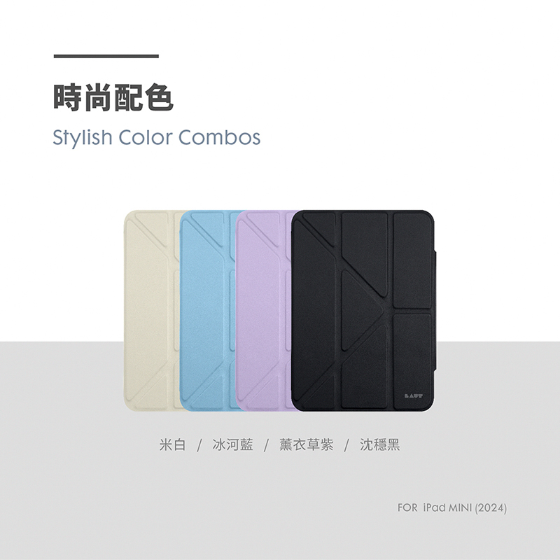 【LAUT 萊德】iPad mini6/7 (2024) 透明背板多功能保護殼-Y折款 (8.3吋 平板殼 多角度)沈穩黑|薰衣草紫|冰河藍|米白Cases, Covers, & SkinsLAUT 萊德台灣官方旗艦店