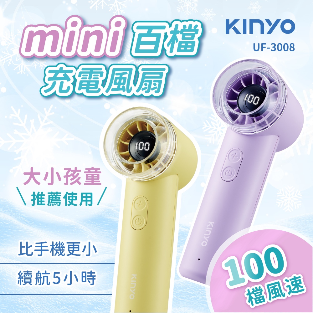 〖KINYO〗 mini百檔充電風扇 (UF) USB風扇 手持扇 百檔無段式 掌上型 續航2~8小時UF3008PU 紫色|UF3008Y 黃色USB & Mobile FansKINYO官方旗艦店_家電館