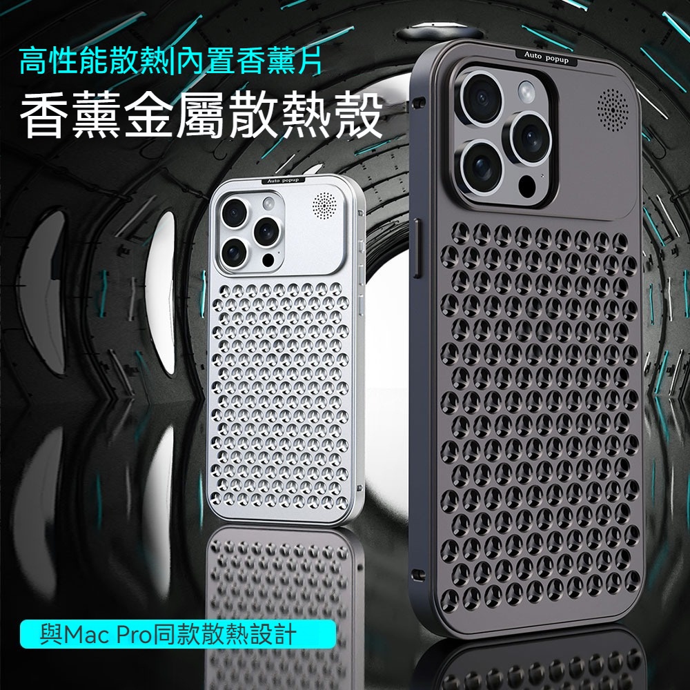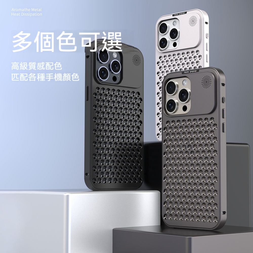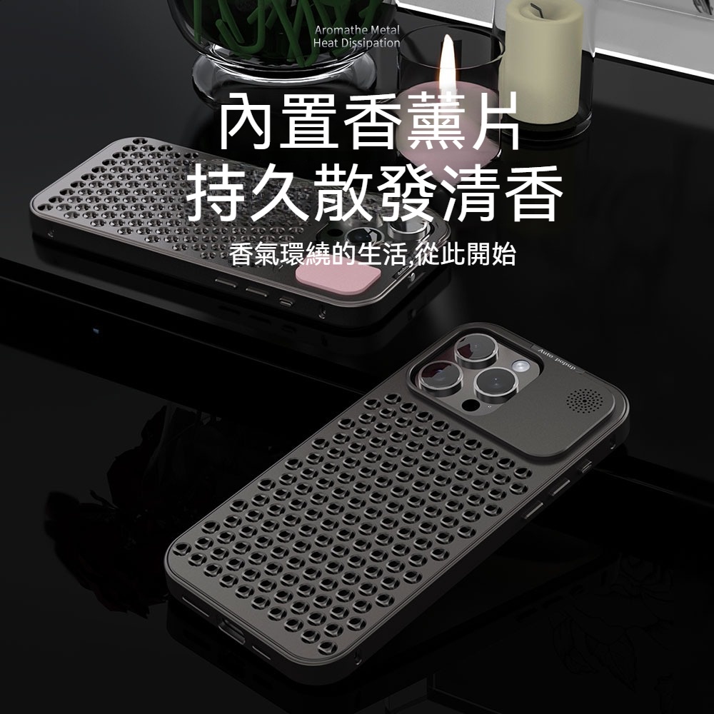 • RJust香薰散熱殼 適用iphone蘋果 16 15 14 13 pro max鏤空12輕鋁金屬plus頂級防摔手機殼