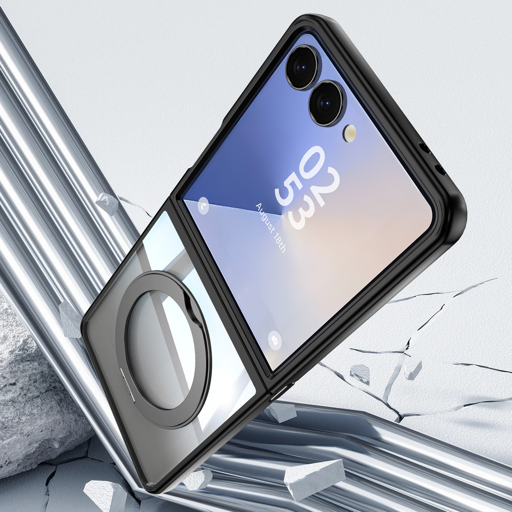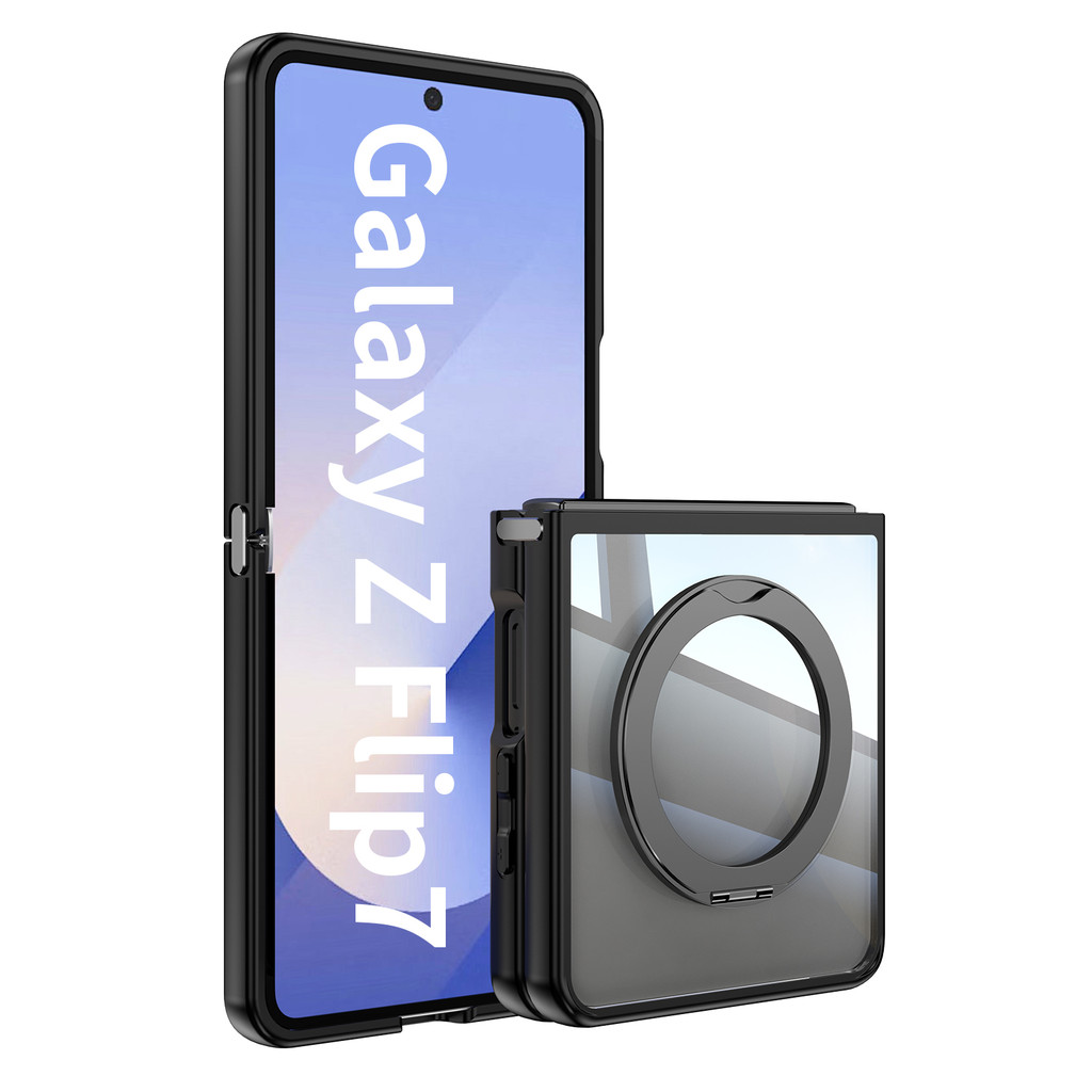 • 鎧甲360手機殼 適用 三星 galaxy z flip 7 旋轉隱形收納支架 高清透明 無線磁吸 防摔防塵 保護殼