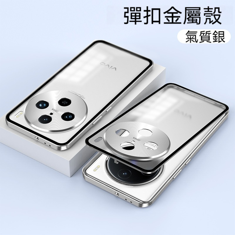 • 彈扣金屬殼 適用 vivo x200 x100 x90半透明 航空鋁pro鎖扣保護殼 磨砂霧面背板 超薄護鏡 防摔手機殼