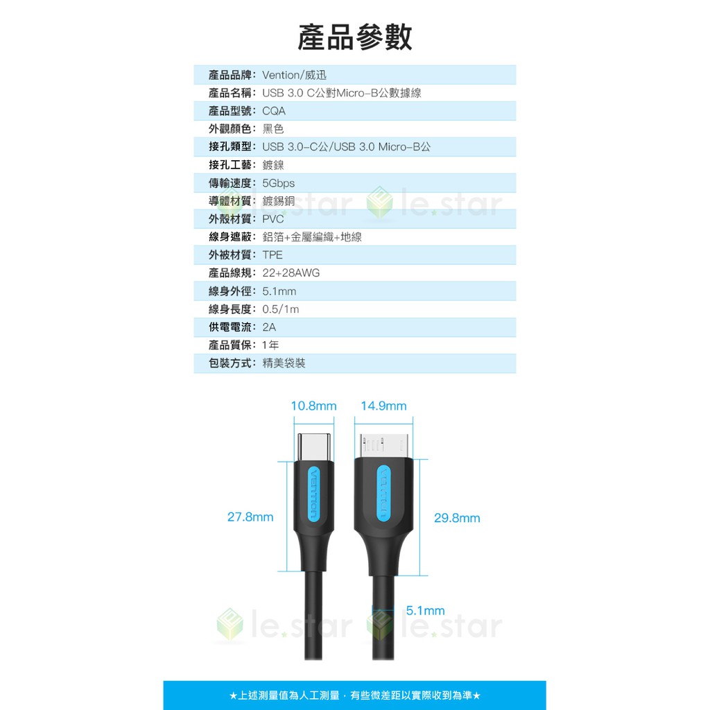 VENTION 威迅CQA系列USB C to USB3.0 Micro B端硬碟快速讀/取傳輸線50CM/1M 公司貨50cm|1mCables, Chargers & Converterslestar簡單生活