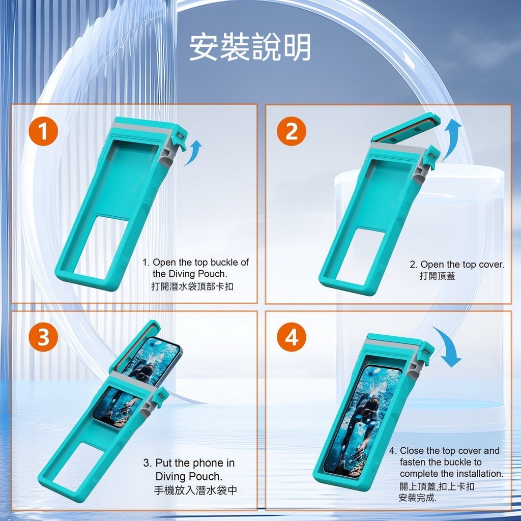 潛水盒 適用iphone蘋果oppo三星sony小米vivo手機通用 水下拍照 攝像錄影 防水保鮮密封 簡易卡扣安裝現貨黑色|草藍色Mobile PouchesLEIKEI 利基通訊旗艦店