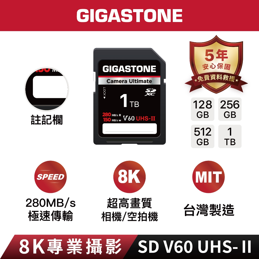 【GIGASTONE】8K攝影記憶卡SD V60 1TB/512G/256G/128G|台灣製造/相機/攝影機/SD大卡128GB|256GB【熱銷】|512GB【推薦】Memory CardsGIGASTONE 立達國際官方旗艦店
