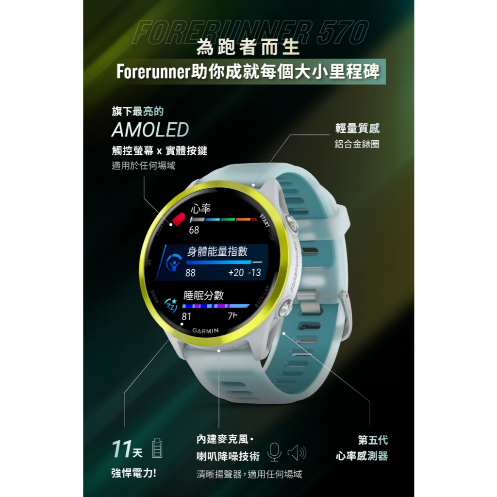 GARMIN Forerunner 570 GPS 智慧心率進階跑錶42mm-獵影黑|42mm-炫冰藍|42mm-風火莓|47mm-獵影黑|47mm-躍動黃|47mm-暮光紫Smartwatches & Fitness TrackersGARMIN 官方旗艦館