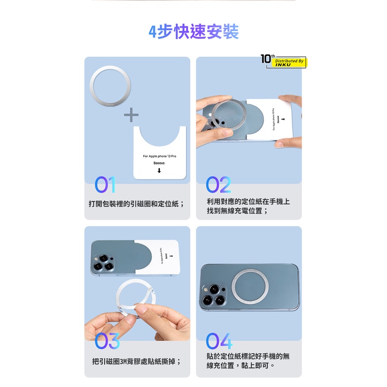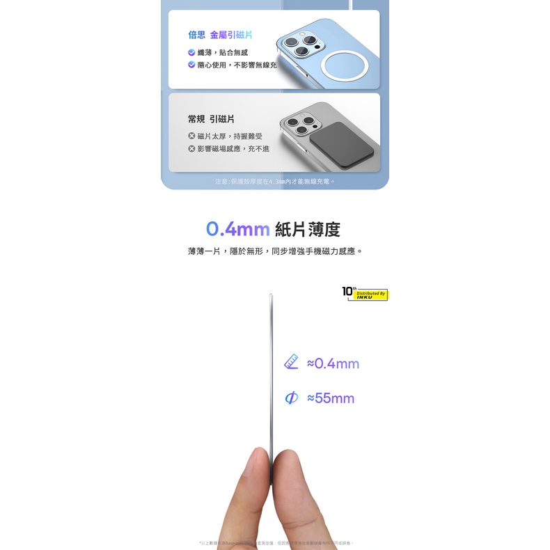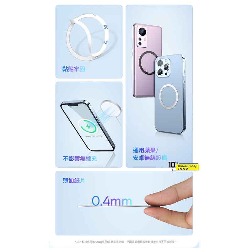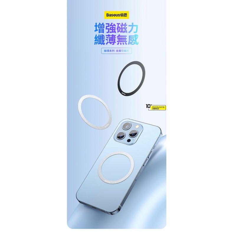磁吸引磁片 倍思 MagSafe金屬磁環 0.4mm極薄 3M無痕膠 不鏽鋼磁吸貼片 手機通用無線充電導磁貼黑色|銀色Othersibits手機配件 官方旗艦館