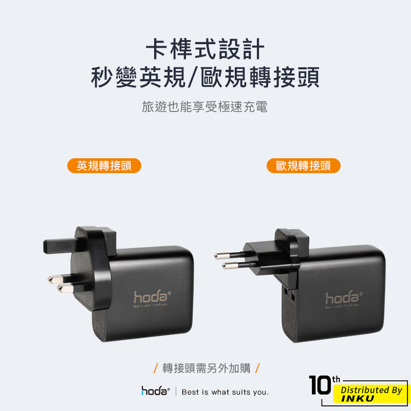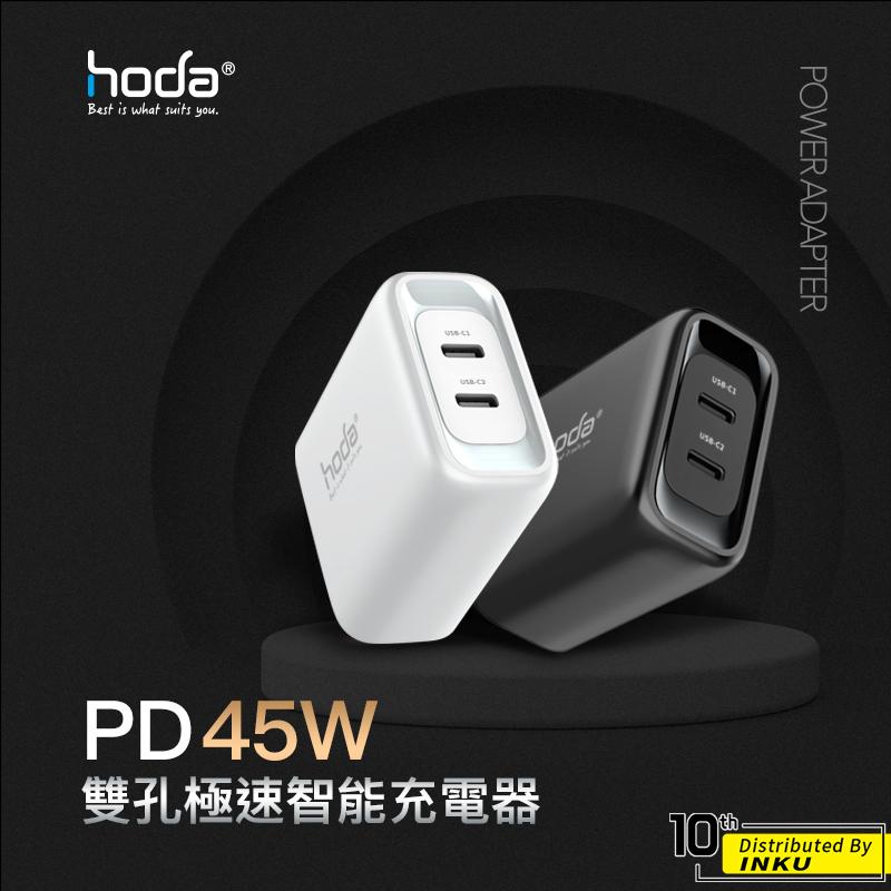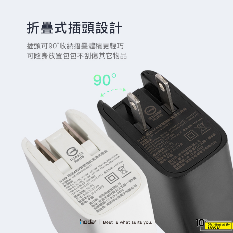 hoda 45W 雙孔極速智能充電器 充電頭 旅充 外出 PD QC 折疊 豆腐頭 出差 便攜 轉接頭 歐規 英規 出國黑色|白色|專用多國轉接頭(歐+英規)Cables, Chargers & Convertersibits手機配件 官方旗艦館