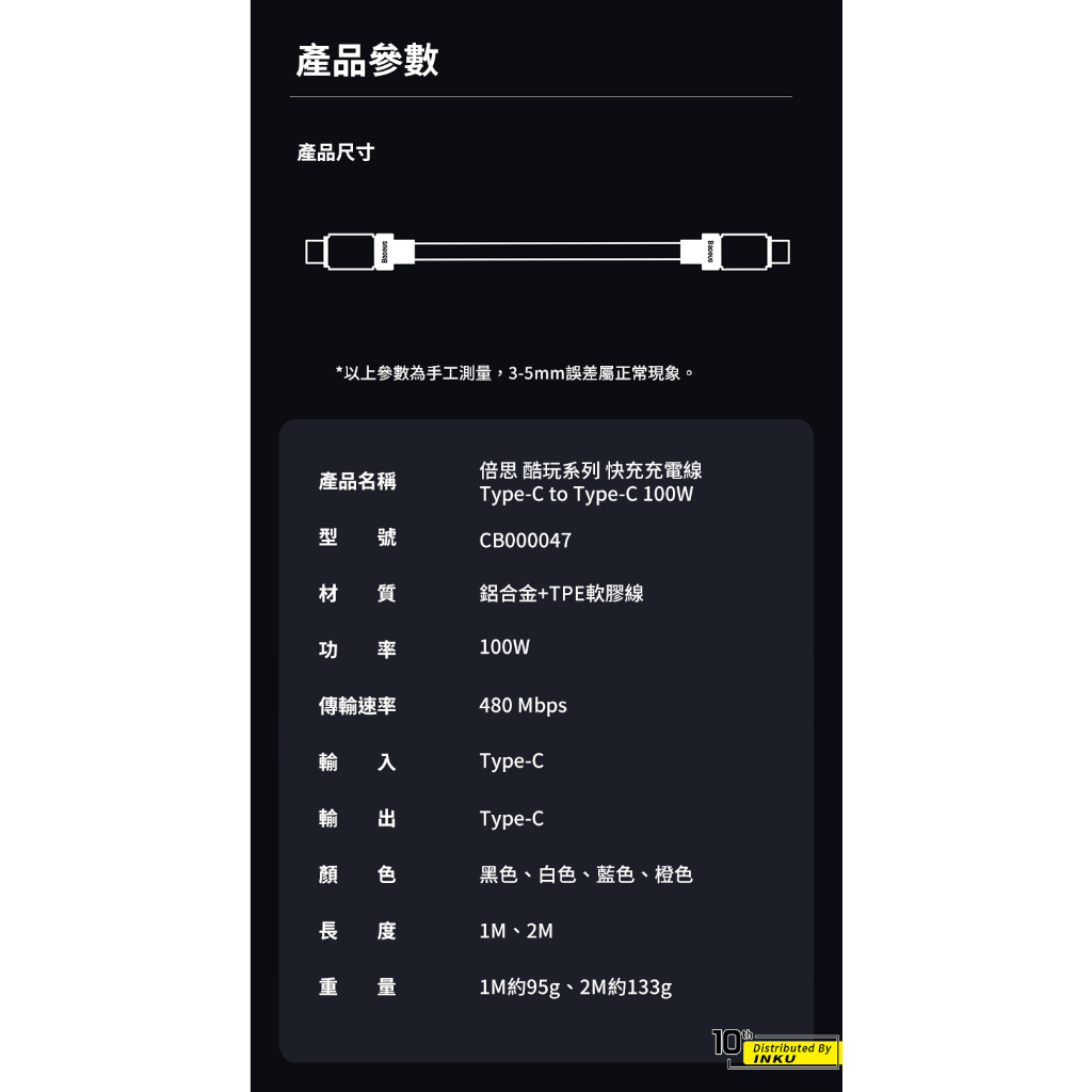 倍思 酷玩 雙TypeC/TypeC 快充充電線 傳輸 手機線 數據線 100W 3.5A PD Switch 1/2M雙TypeC,白色 2M|USB to TypeC,橙色 1M|USB to TypeC,橙色 2M|雙TypeC,橙色 1M|雙TypeC,橙色 2M|USB to TypeC,藍色 1M|USB to TypeC,藍色 2M|雙TypeC,黑色 1M|雙TypeC,藍色 2M|USB to TypeC,黑色 1M|USB to TypeC,白色 2M|USB to TypeC,白色 1M|雙TypeC,黑色 2M|雙TypeC,白色 1M|雙TypeC,藍色 1M|USB to TypeC,黑色 2MCables, Chargers & Convertersibits手機配件 官方旗艦館