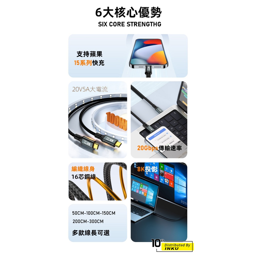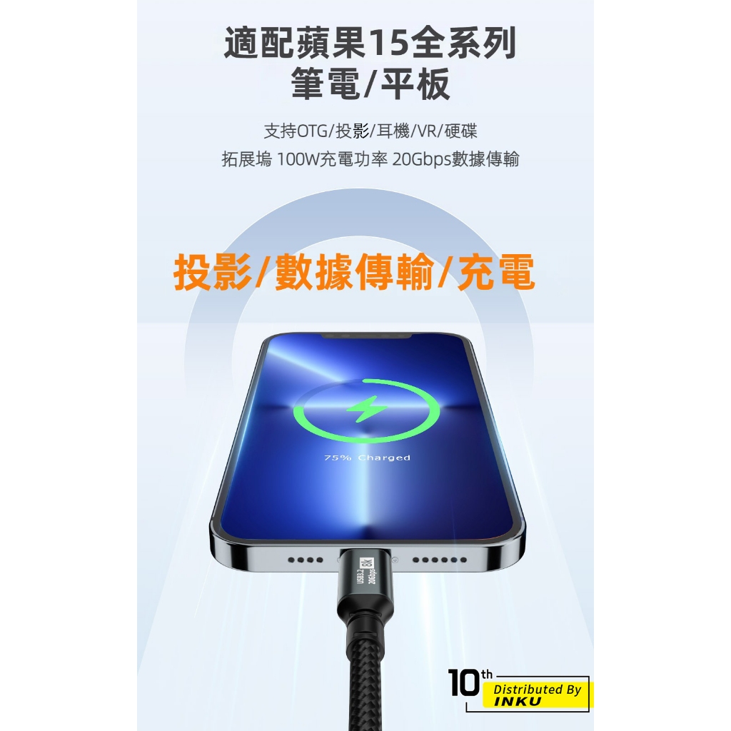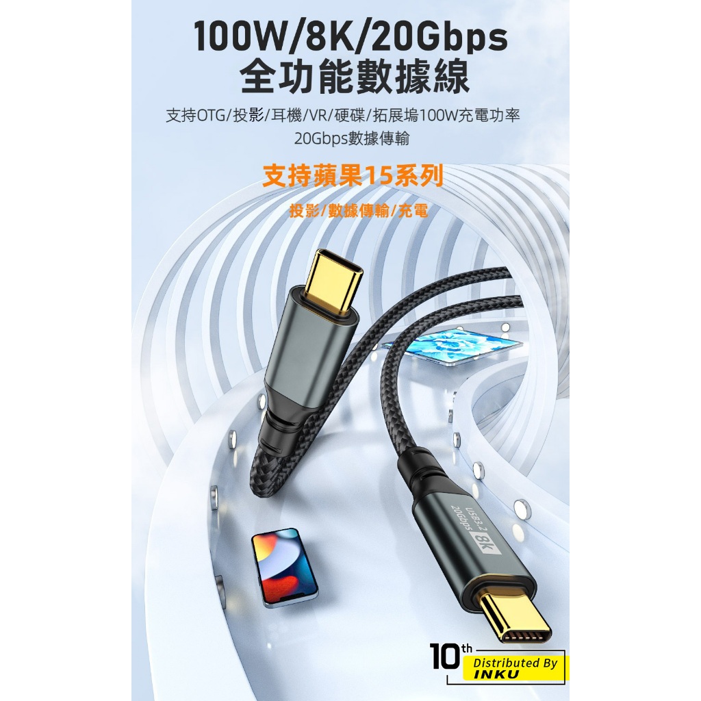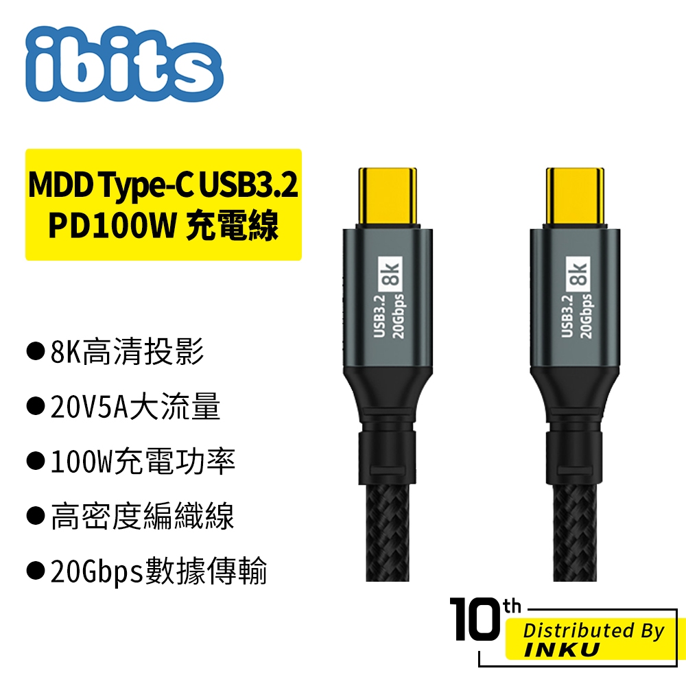 ibits MDD TypeC USB3.2 PD100W快充 20Gbps 傳輸 8K投影 0.5至3m充電線0.5M|1M|1.5M|2M|3MCables, Chargers & Convertersibits手機配件 官方旗艦館