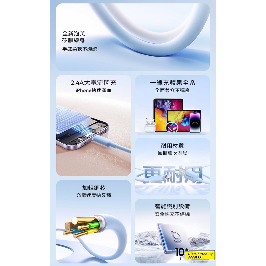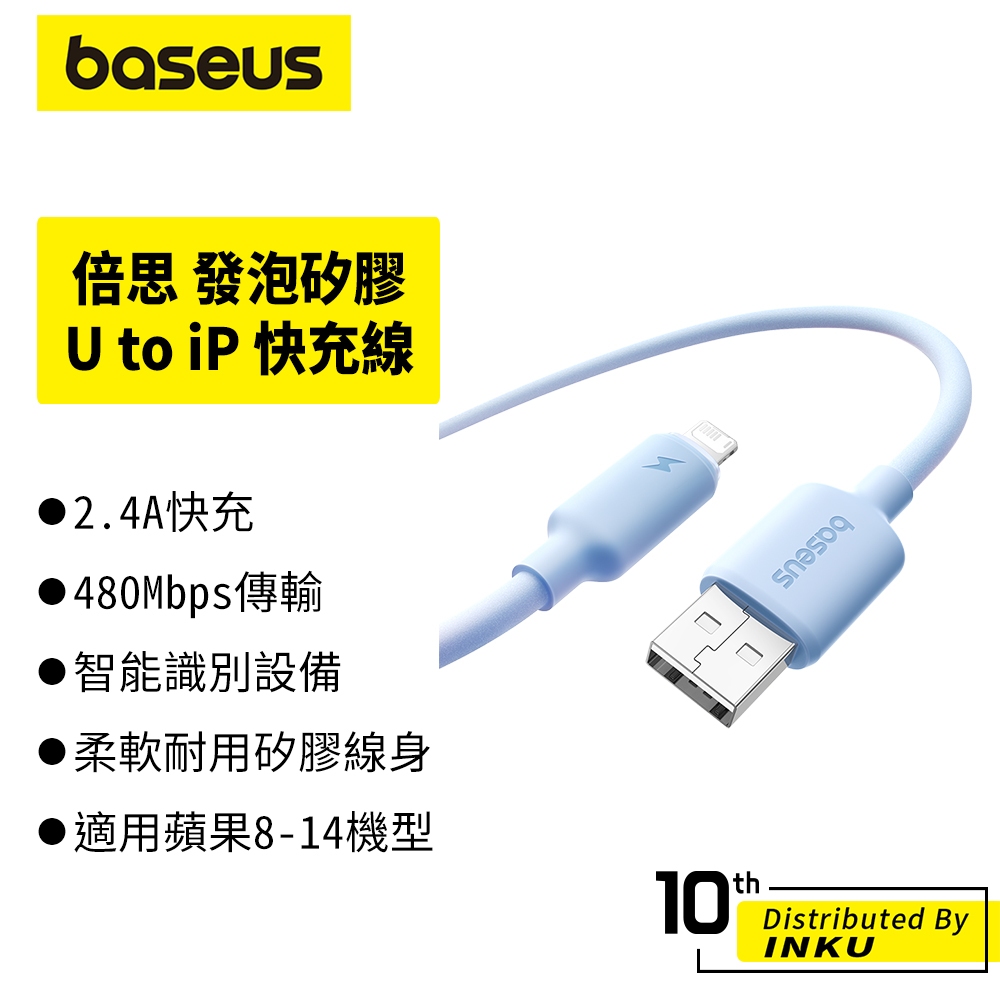 倍思 發泡矽膠充電線 USB to Lightning 2.4A快充 傳輸480Mbps 適用iPhone 8-14星際黑,1m|星際黑,2m|皓月白,1m|皓月白,2m|星海藍,1m|星海藍,2mCables, Chargers & Convertersibits手機配件 官方旗艦館
