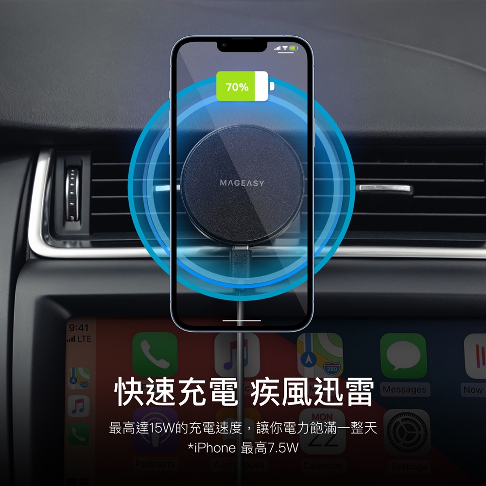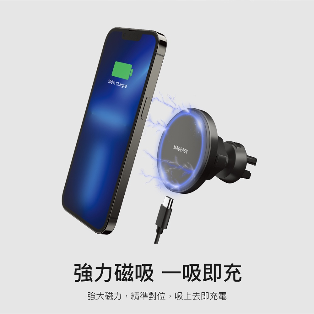 MAGEASY MagSafe iPhone 磁吸無線充電車用手機架 MagMount 車用手機架 車載支架 一年保固黑色|迷霧灰|旗艦館專款Cables, Chargers & ConvertersMAGEASY 官方旗艦館