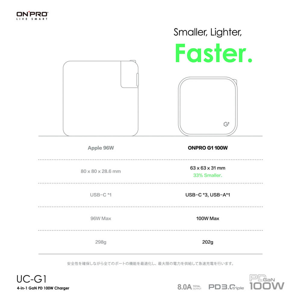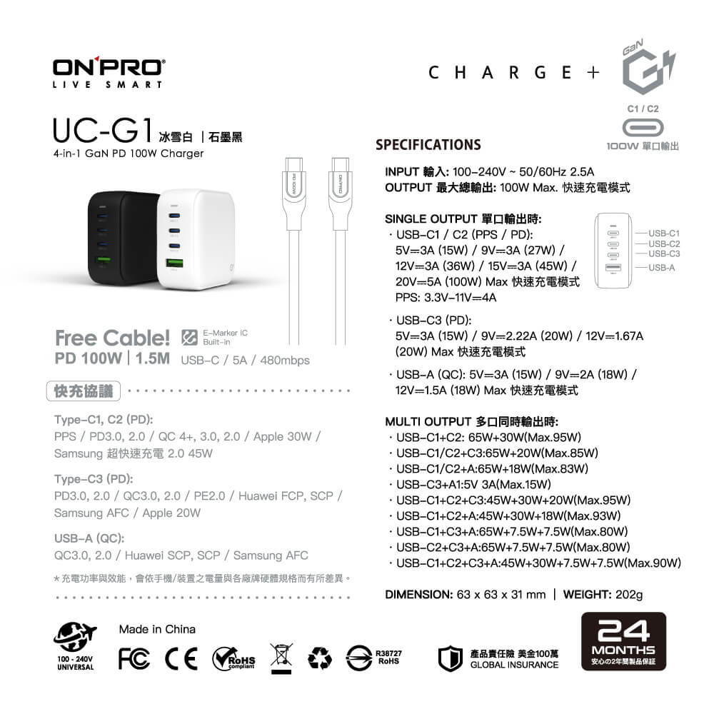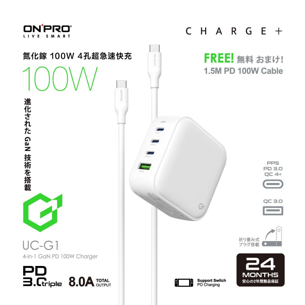 【ONPRO|100W四孔快充頭】氮化鎵GaN 超急速PD充電器 超快速 附贈快充線 UC-G1_Kimi極美職人推薦【石墨黑】,單顆|【冰雪白】,單顆Cables, Chargers & ConvertersKimi極美職人