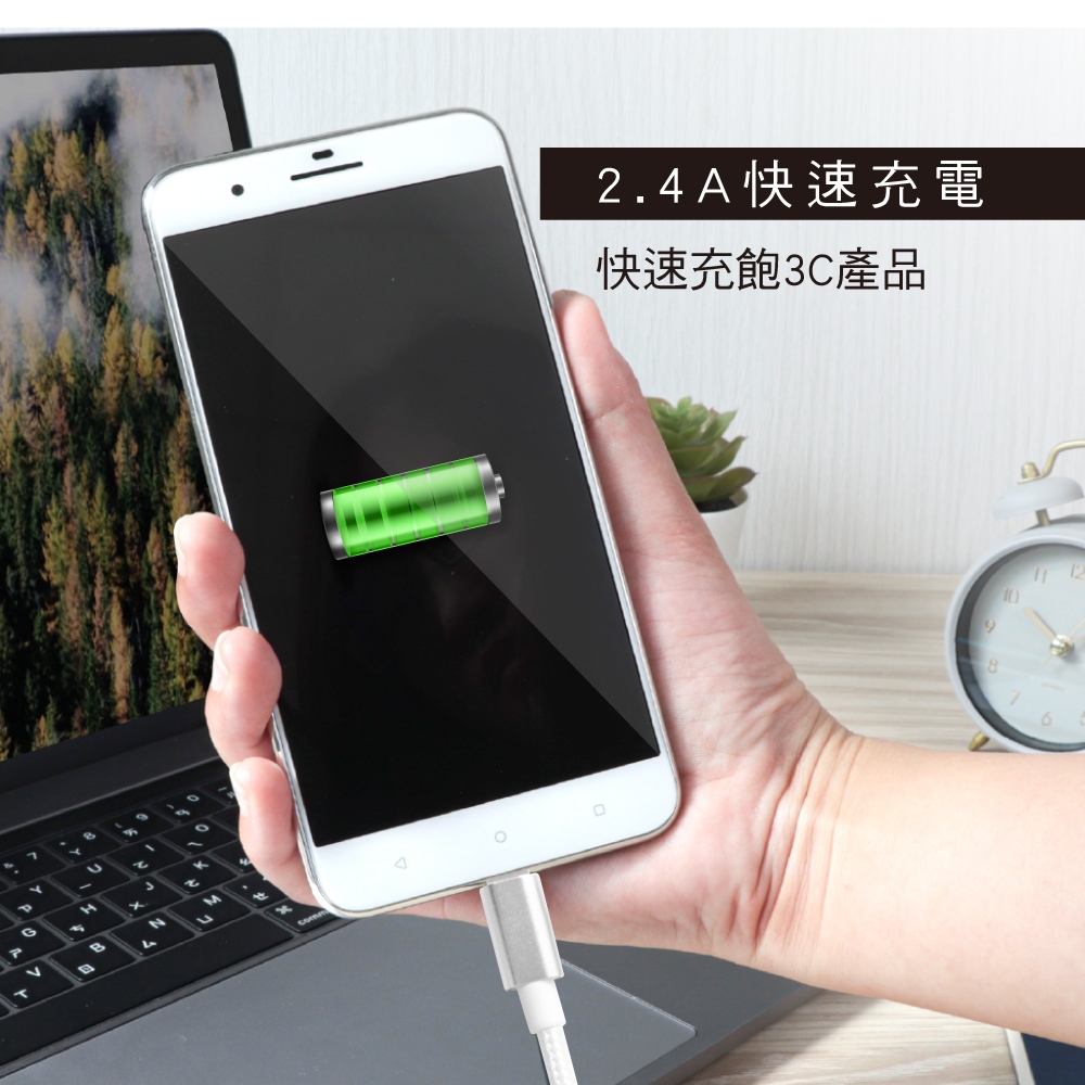 • 【KINYO官方直營】2.4A Type-C lightning蘋果 鋁合金編織充電傳輸線3M(USB)