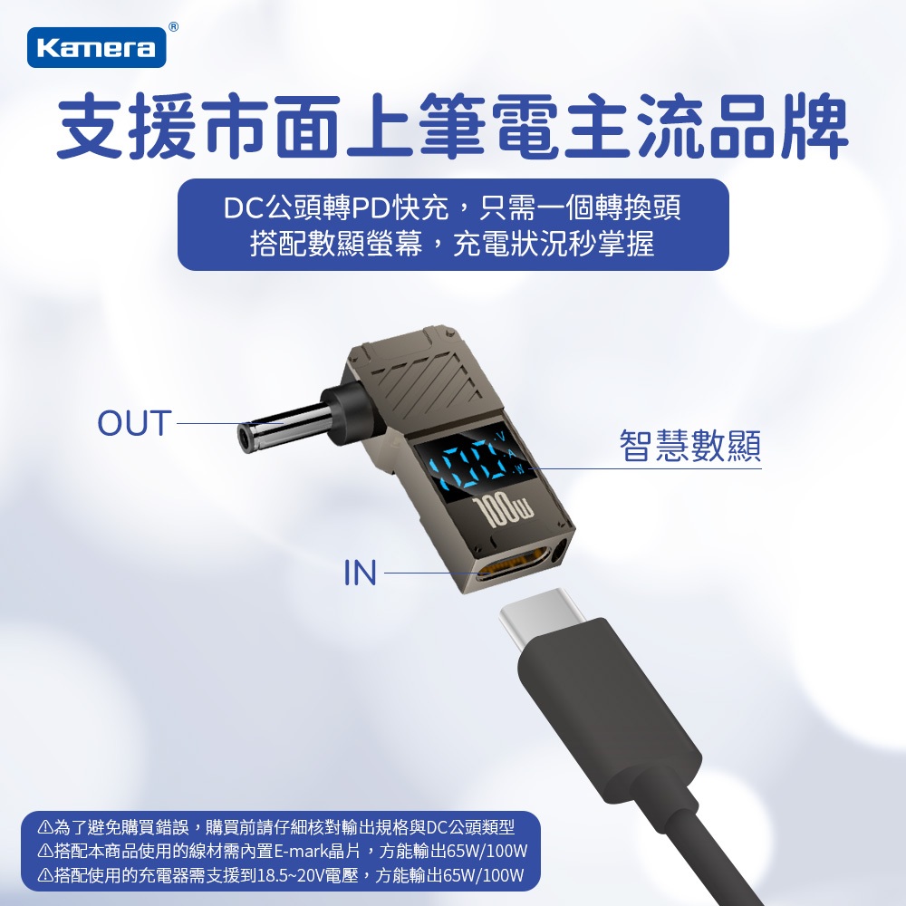 Kamera 筆電專用 PD誘騙轉接頭 數字顯示 Type-C母轉DC公 PD數顯轉接頭 20V/100W/5ADC 3.0*1.1|DC 3.5*1.35|DC 4.0*1.35|DC 4.0*1.7|DC 4.0*1.7中間溝|DC 4.5*3.0*0.6-Dell|DC 4.5*3.0*0.6-HP|DC 4.8*1.7|DC 5.0*3.0*1.0|DC 5.5*1.7|DC 5.5*2.1|DC 5.5*2.5|DC 6.0*3.7*0.6|DC 7.4*5.0*0.6-Dell|DC 7.4*5.0*0.6-HP|DC 7.9*5.5*0.9 聯想圓口|DC 11*6.0 聯想方口Cables, Chargers & ConvertersKamera 佳美能旗艦館