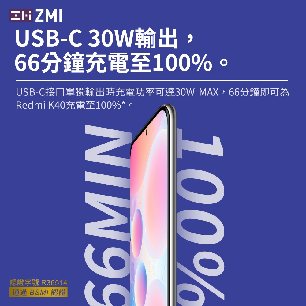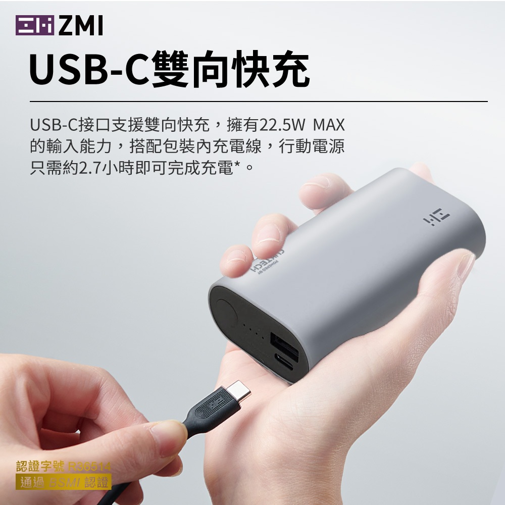 • ZMI 30W 迷你型行動電源 10000mAh (QB818) PD QC 雙向快充 Wh標示 符合航空規範 可上飛機