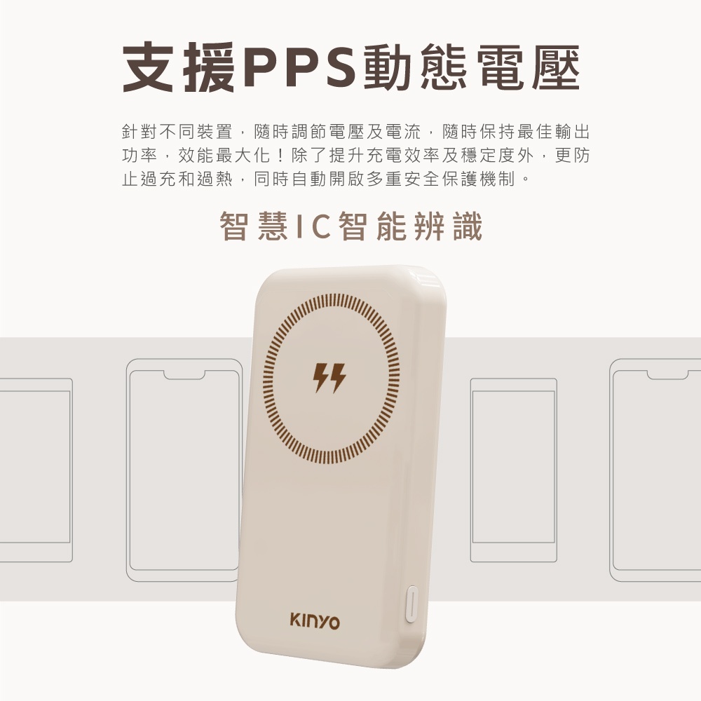 【KINYO官方直營】10000mAh 20W快充支架磁吸無線行動電源/行充 (NKPB)NKPB4342MT 奶茶色Powerbanks & BatteriesKINYO官方旗艦店_3C館