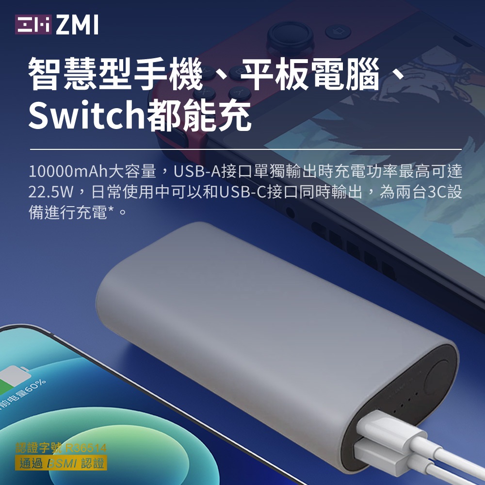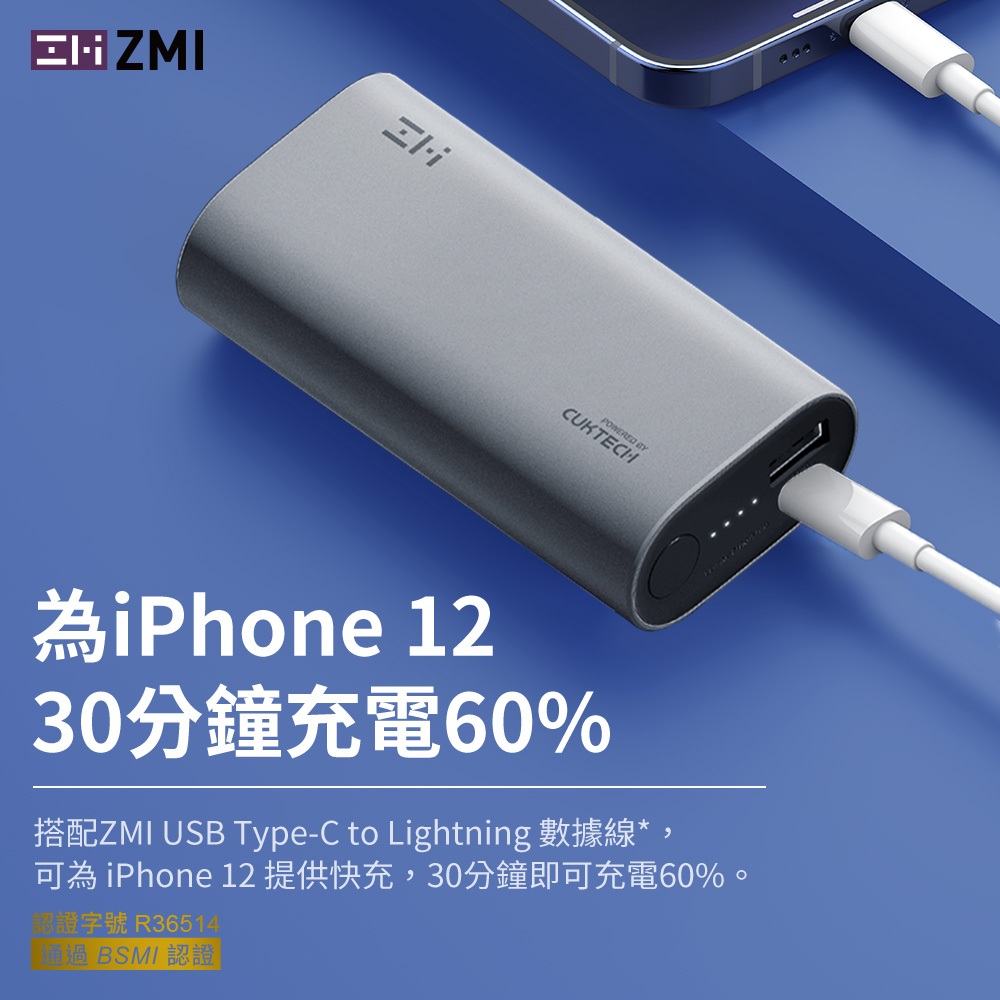 ZMI 30W 迷你型行動電源 10000mAh (QB818) PD QC 雙向快充 Wh標示 符合航空規範 可上飛機